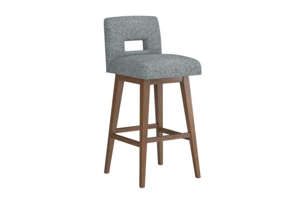 Introducing our Adjustable Swivel Stool, designed to elevate both style and comfort in your space. Featuring a Keyback Grey upholstered seat and a with a Brown base that has an adjustable height and swivel function, this stool is the perfect addition to your kitchen island, bar, or counter.