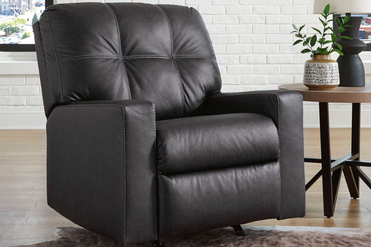 Everyday comfort meets versatile style in the Henry recliner. The handsome hue of the goes-with-anything faux leather takes away the stress of styling, expertly pairing with your existing aesthetic. And its simple pull tab motion gets you reclining in no time. From kicking back on the weekends to relaxing post-work, living room lounging has never been so chic.
