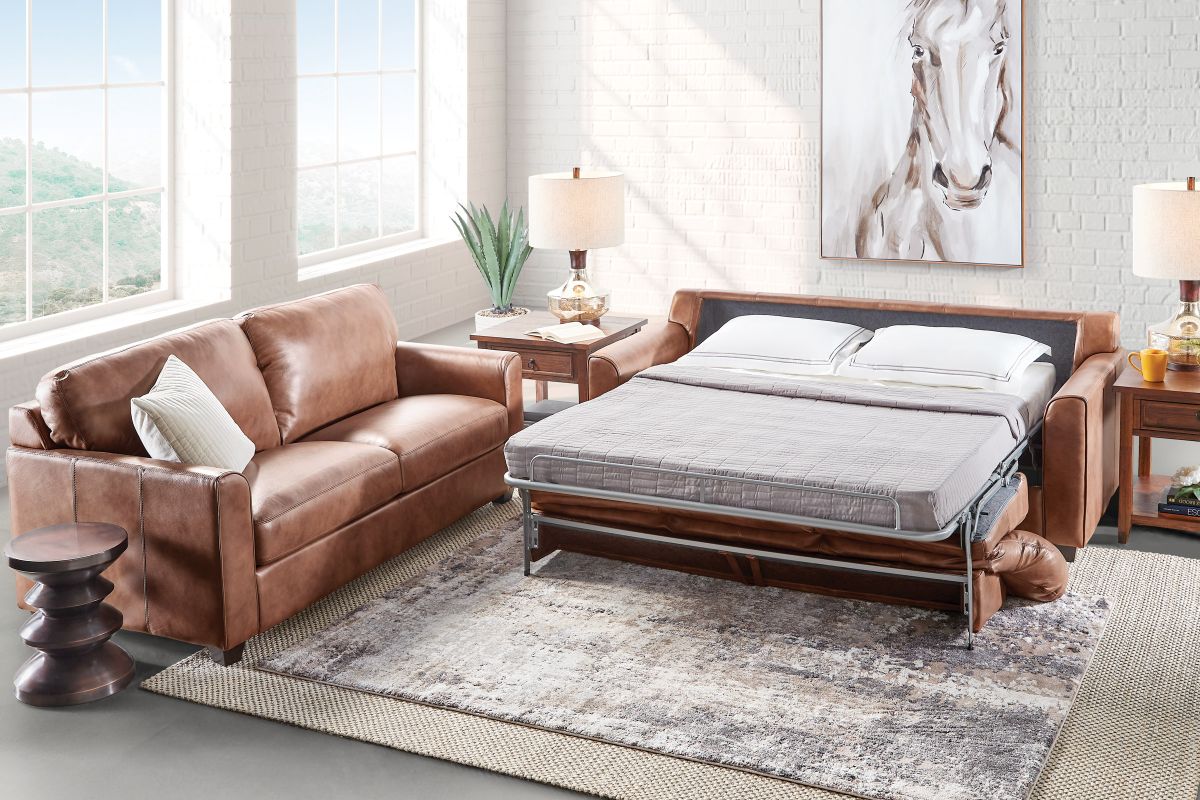 Introducing the Wesley Collection – a stunning ensemble designed to bring a touch of modern elegance and exceptional comfort to your home. This collection is perfect for those who appreciate timeless style combined with functional versatility. Crafted from premium-quality leather, each piece in this collection exudes sophistication and luxury. The rich leather upholstery is not only beautiful but also durable, ensuring that your furniture remains elegant and comfortable for years to come. The sofa and loveseat are also available as queen and full sleepers, featuring a smooth pull-out mechanism and a comfortable mattress, making it easy to transform your living room into a guest room when needed. Elevate your living space with the Wesley collection.