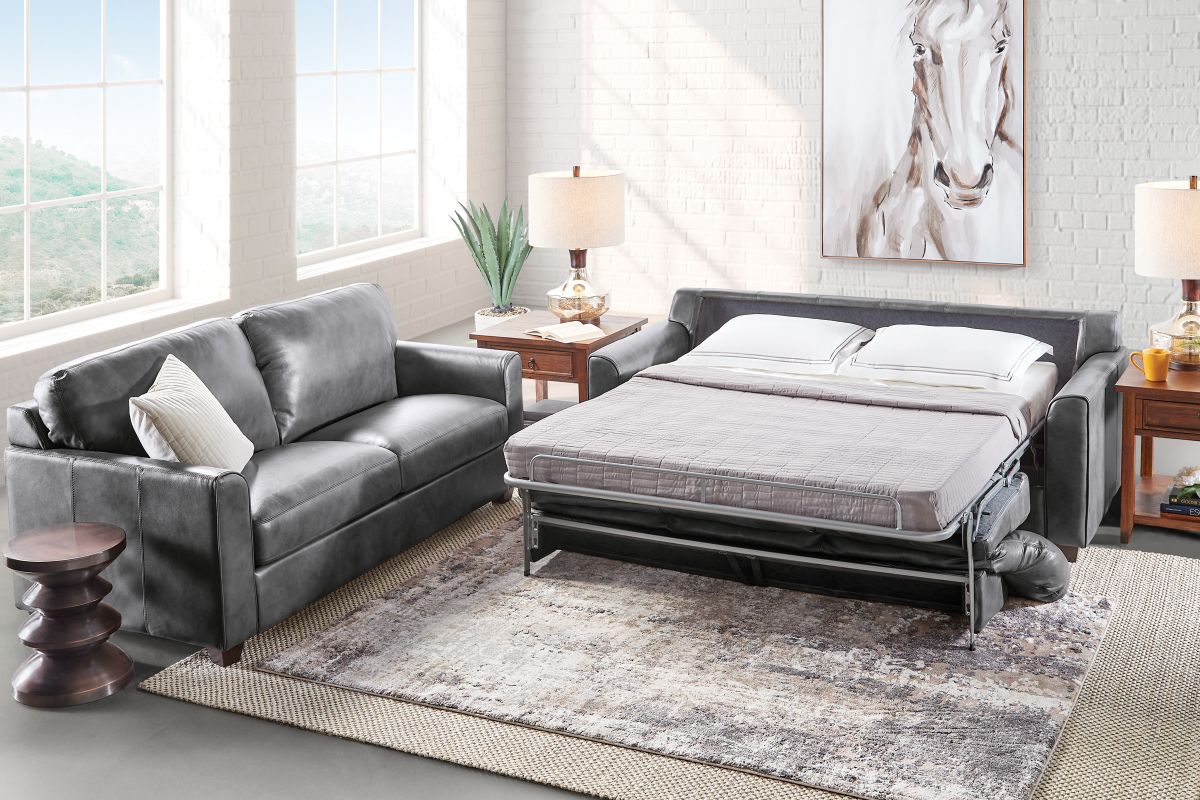 Introducing the Wesley Collection – a stunning ensemble designed to bring a touch of modern elegance and exceptional comfort to your home. This collection is perfect for those who appreciate timeless style combined with functional versatility. Crafted from premium-quality leather, each piece in this collection exudes sophistication and luxury. The rich leather upholstery is not only beautiful but also durable, ensuring that your furniture remains elegant and comfortable for years to come. The sofa and loveseat are also available as queen and full sleepers, featuring a smooth pull-out mechanism and a comfortable mattress, making it easy to transform your living room into a guest room when needed. Elevate your living space with the Wesley collection.