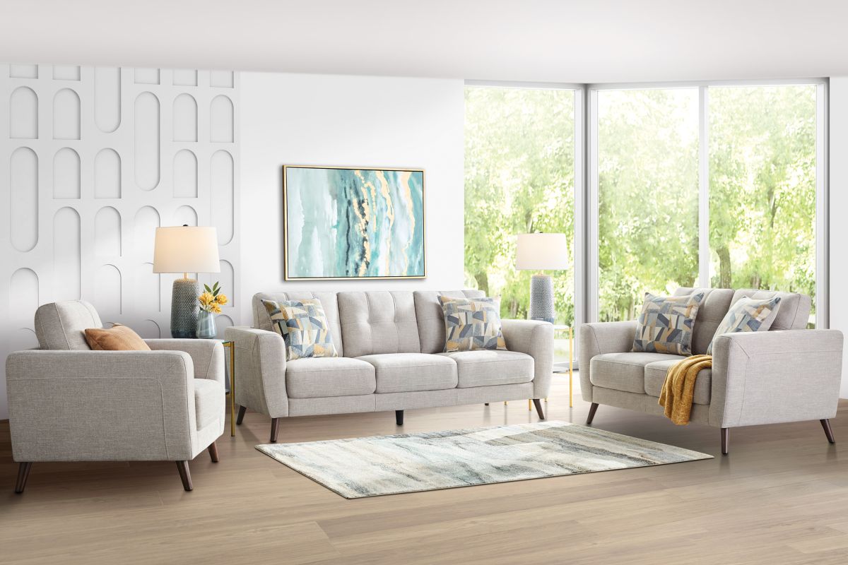 Introducing the Sophie Collection – a stylish blend of modern design and everyday comfort. Each piece in this collection features sleek, tapered angled legs that add a touch of sophistication and elevate the overall look. The track arms and modern frame give it a clean, contemporary silhouette, perfect for updating any living space. Complementing the streamlined design, coordinating toss pillows add both comfort and contrast to this collection. Whether you’re relaxing with family or hosting guests, this collection offers a perfect balance of style and coziness, making it a versatile and timeless addition to your home.