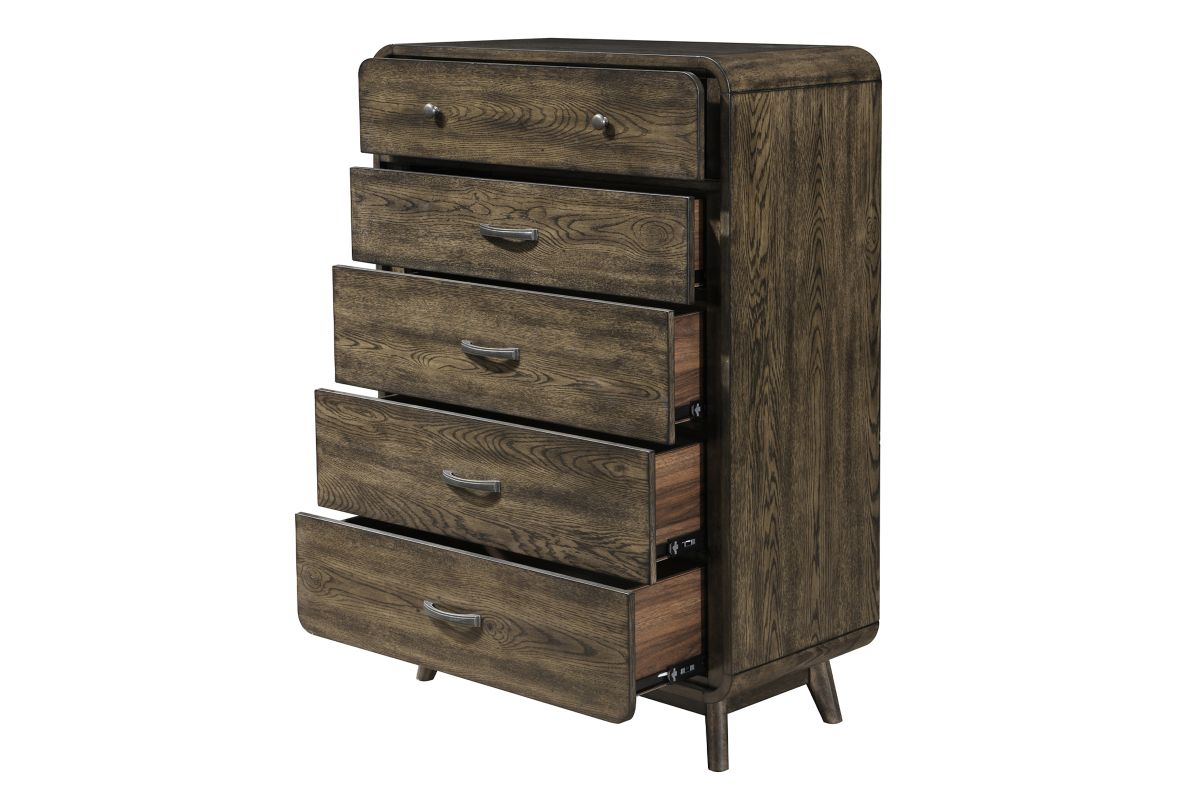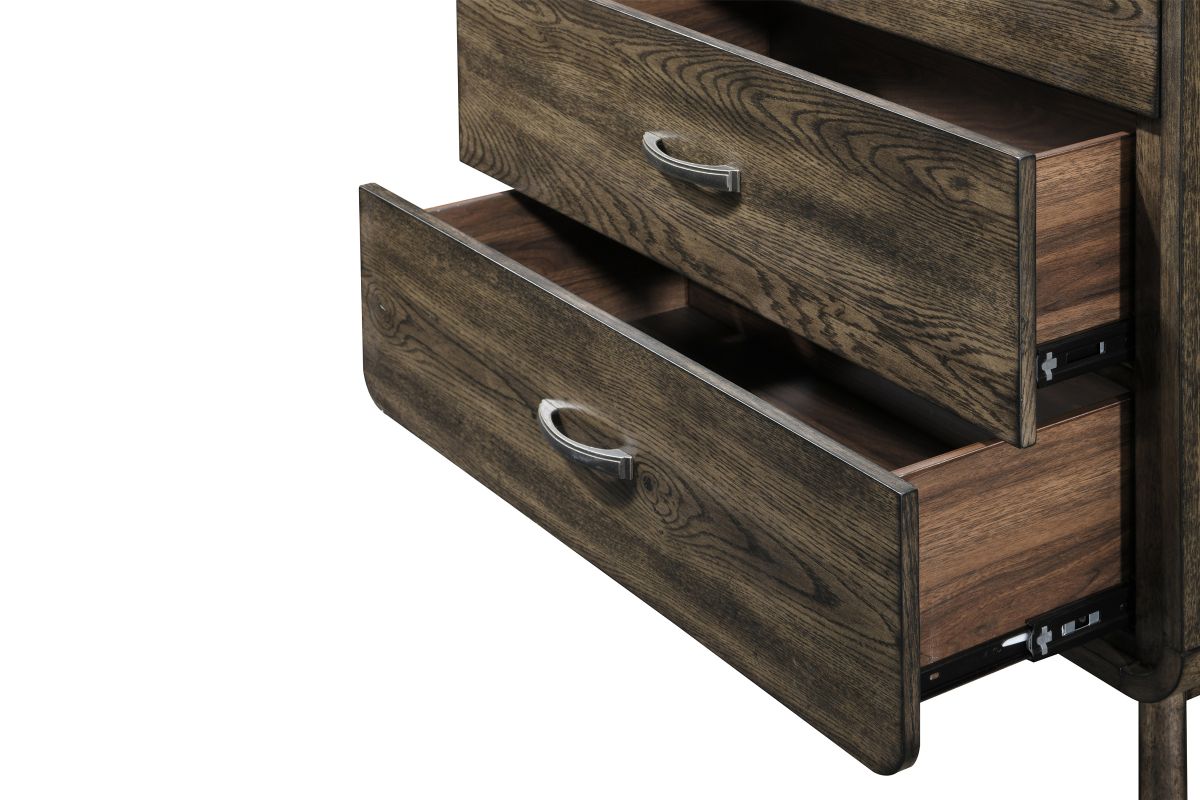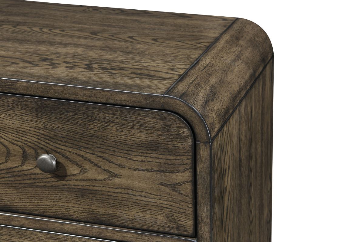 The Rex chest combines functionality with style, featuring a durable oak veneer construction and a sleek, modern design. The top drawer is lined with felt, providing a protective space for delicate items like jewelry or keepsakes. With multiple spacious drawers, it offers ample storage to keep your room organized. The smooth finish and streamlined silhouette make it a versatile addition to any bedroom, seamlessly blending with various decor styles.