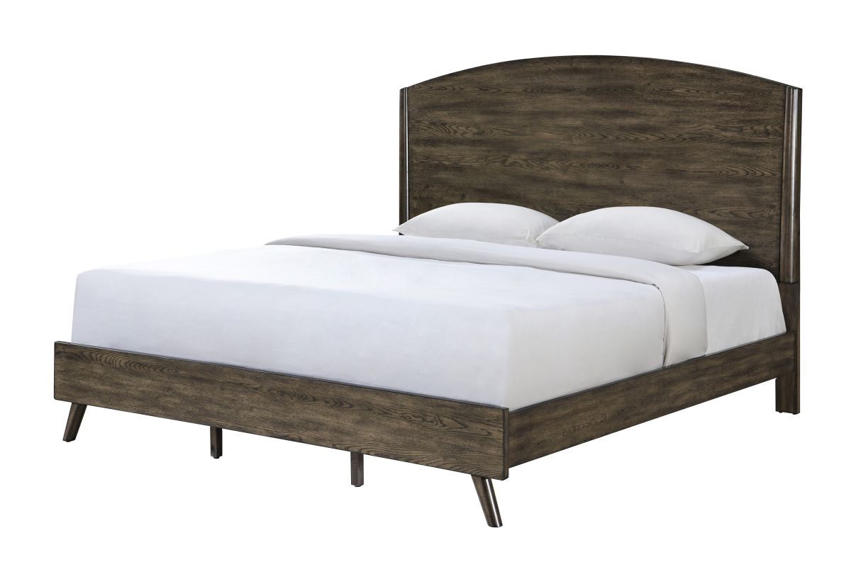 The Rex King bed is crafted with a solid oak veneer, showcasing its natural grain and warm tones. The curved headboard adds a touch of elegance, creating a subtle statement piece for your bedroom. The low-profile footboard and sleek, tapered legs provide a contemporary aesthetic, blending modern design with timeless materials. Ideal for various interior styles, this bed offers both durability and sophistication, making it a versatile centerpiece for any sleeping space.
