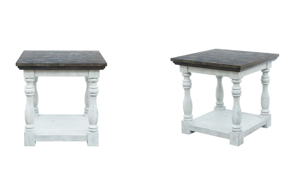 The Hava end table is a beautiful two tone finish with distressing outfits the sturdy frame and provides a casual even rustic feel. Plus, plentiful storage allows places to put magazines, remotes and more!