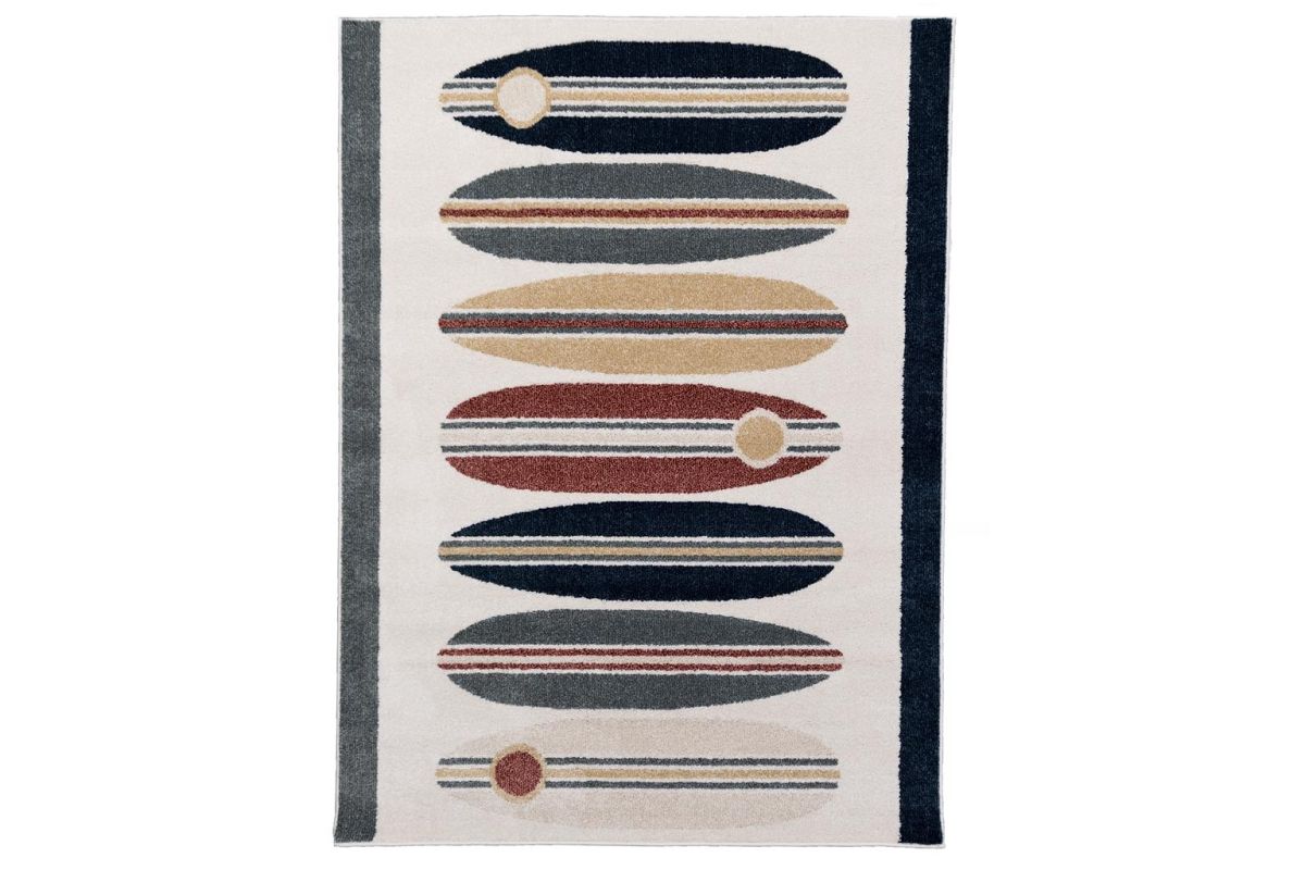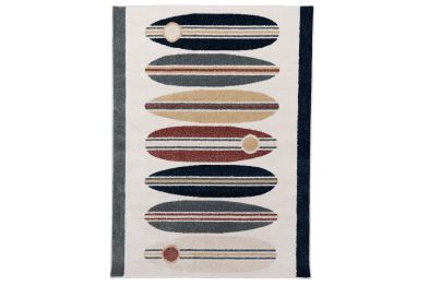 Bring a laid-back coastal vibe into your home with this playful area rug, featuring an arrangement of elongated surfboard shapes stacked vertically in warm, earthy tones.