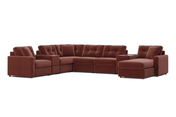 Includes LAF chair, (2) standard consoles, (3) armless chairs, corner piece, and RAF chaise. Visit a showroom to learn more about individual components and to work with a sales specialist to customize your own configuration today.