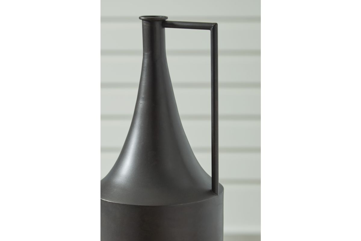 Chic on a tabletop or shelf, this vase is an eye-catching accent. Its angular handle provides a sharp, stunning geometric contrast to the curved neck. Finished in a distressed brown hue, this piece plays well in spaces ranging from casual to contemporary.
