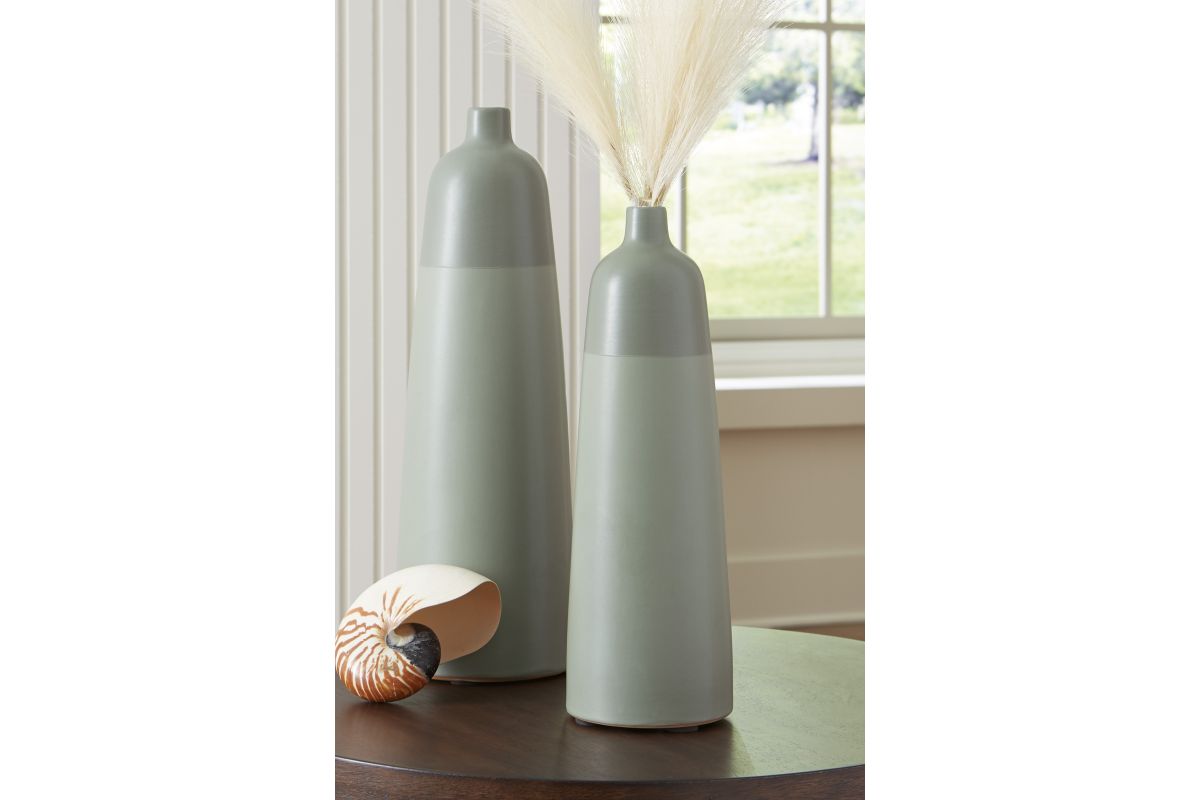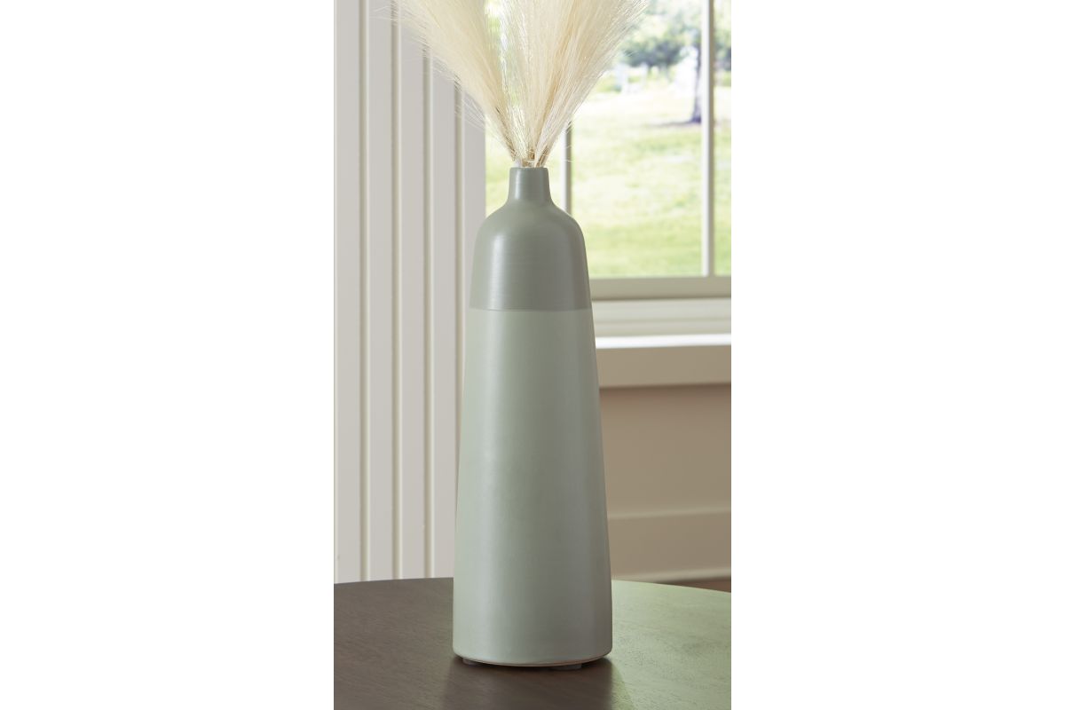 This richly glazed ceramic vase makes a striking centerpiece, either by itself or filled with dried or faux florals. Its simply beautiful shape and organic green hues complement your naturally superb sense of style.