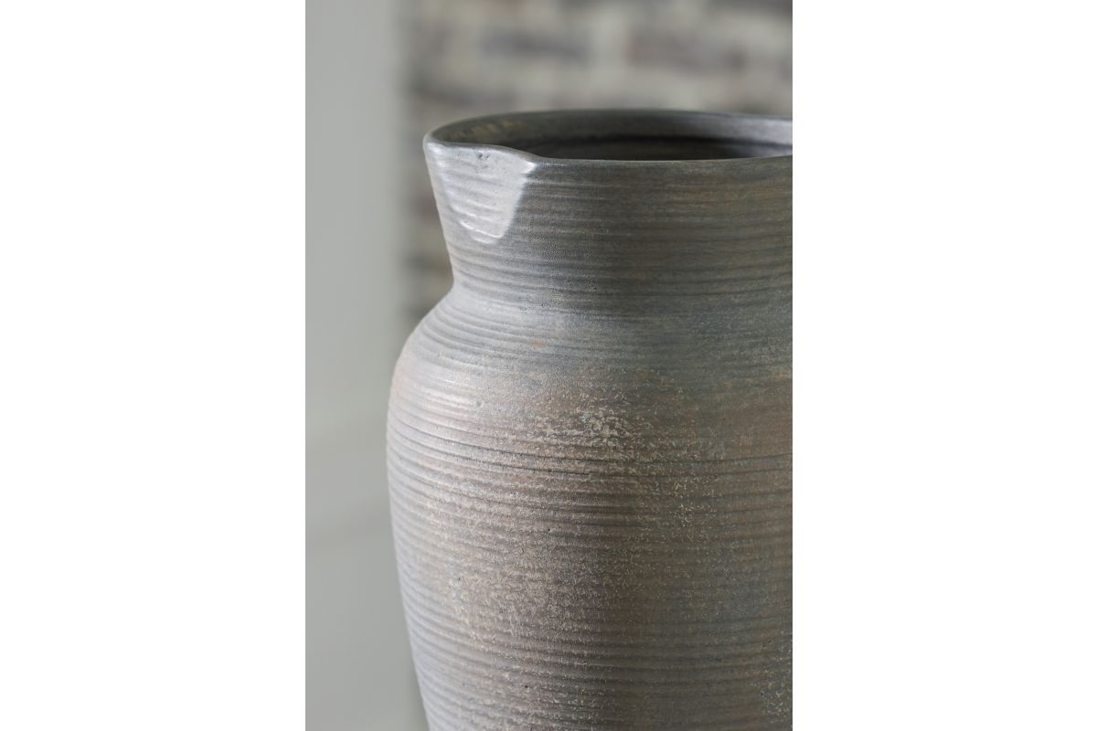 Contain your enthusiasm for casual earthy elegance. Loaded with a sense of antiqued beauty, this stunning ceramic vase adds a beautiful timeworn quality to your home. Let it wow on its own, or kick things up a notch and fill it with faux or dried bouquets.