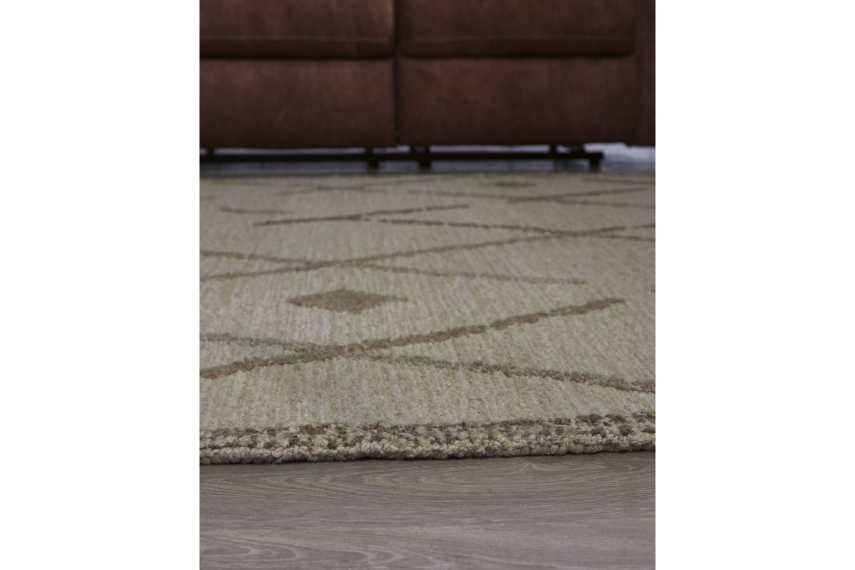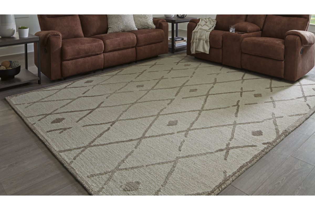 This elegant, understated area rug masterfully combines design and durability. Hand-tufted for superior quality, its geometric pattern and neutral palette pair seamlessly with rustic and contemporary decorative schemes. With a soft and cozy texture, this rug offers welcoming appeal with every step.
