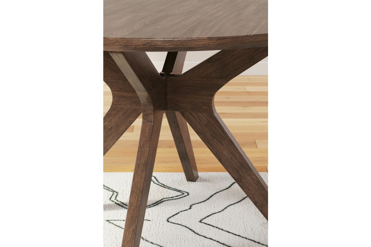 A refreshed take on retro aesthetics. This dining table adds an air of playful simplicity to your dining space, capturing the architectural language of mid-century stylings. Sleek on top, it invites the eye with a dynamic base. A casual, yet timeless, finish completes this study in form and function.