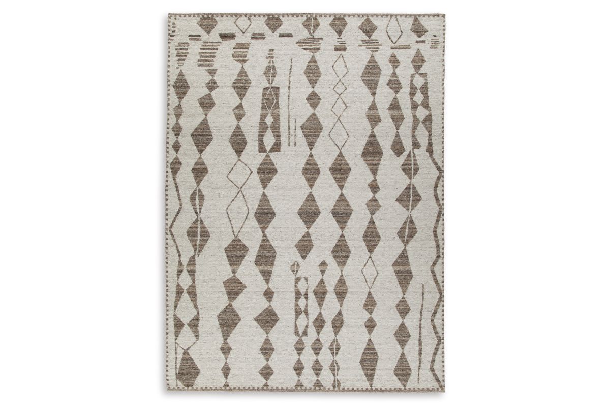 With its striking geometric design, this area rug knows how to make a subtle statement. Its shades of beige and brown are a welcome complement underfoot that doesn't overtake your room's decor. This beautiful rug infuses a laid-back sensibility that simply suits your style.