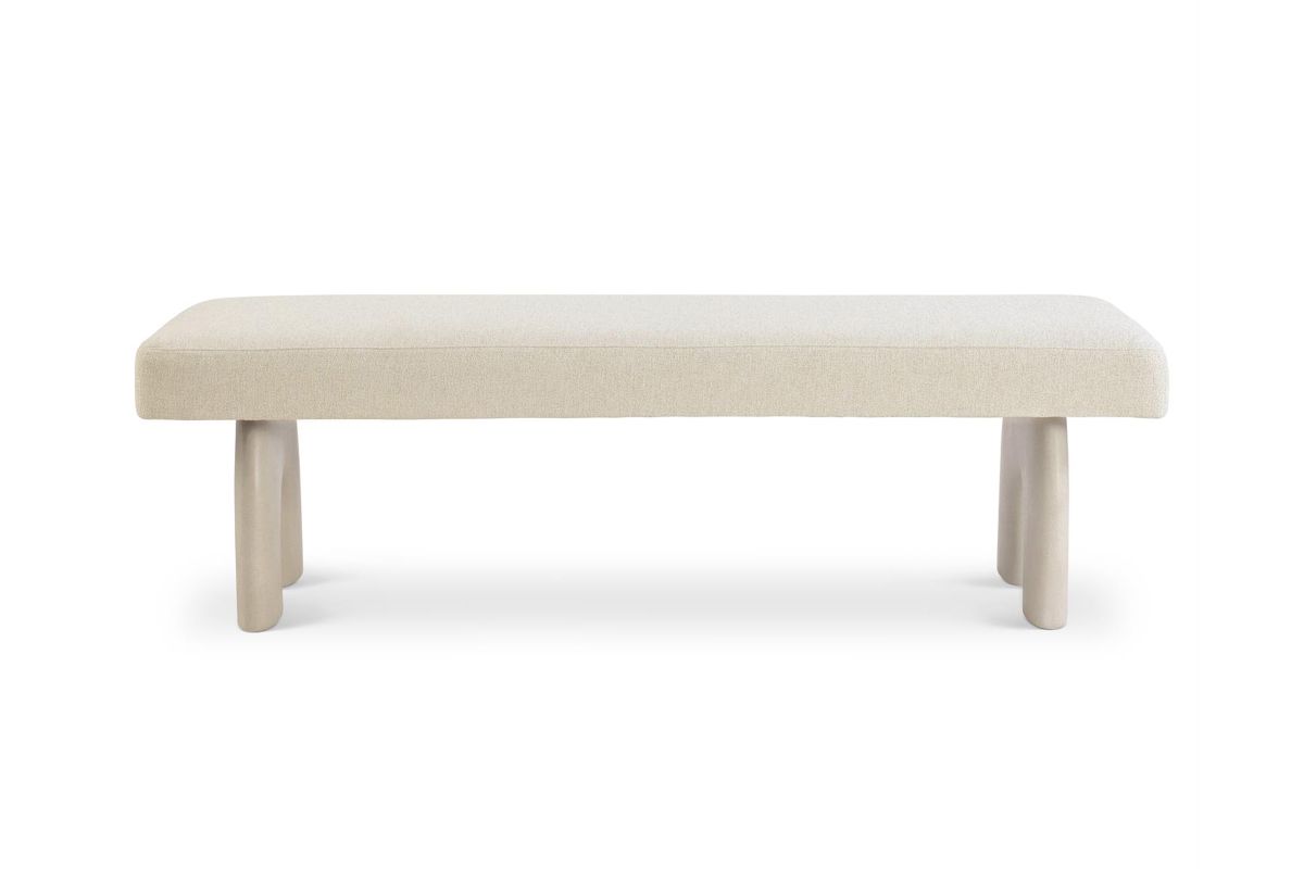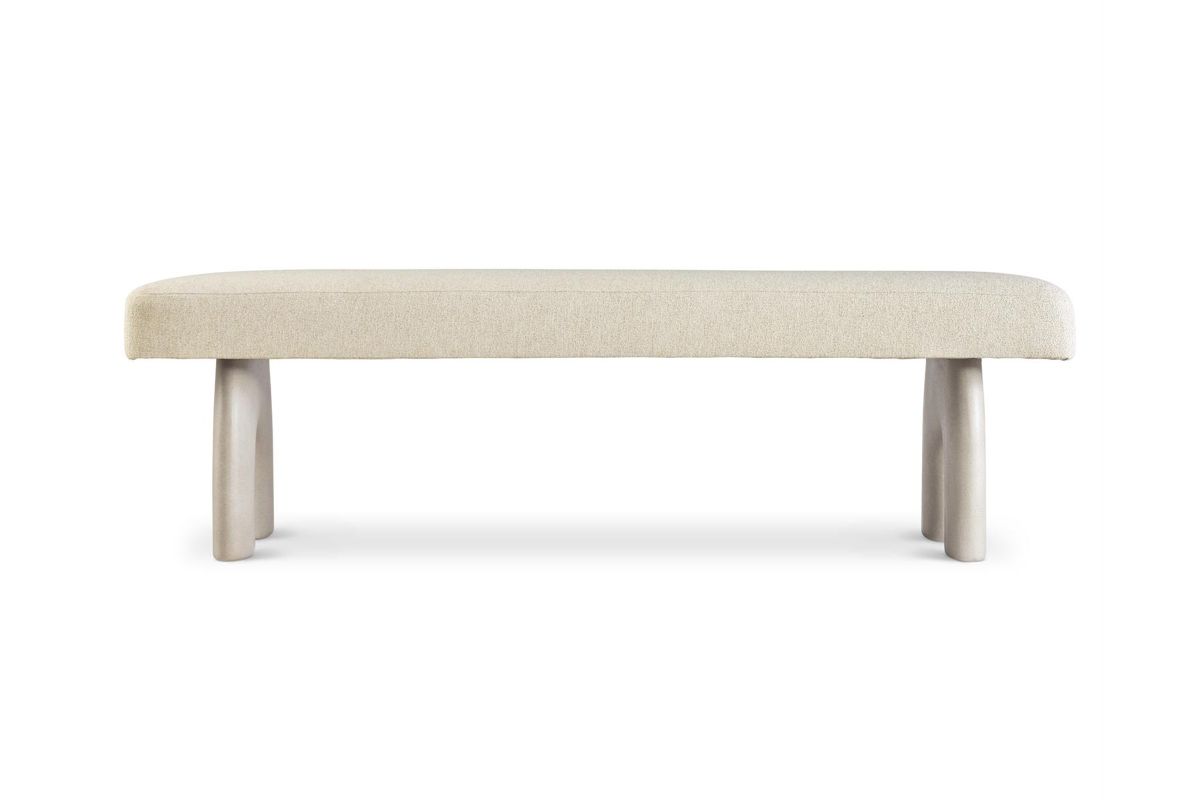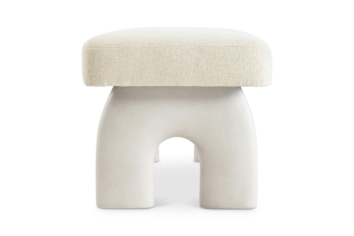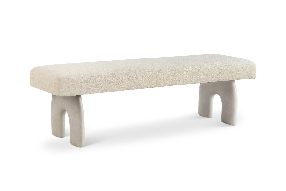 Unique arched legs give the Antibes bench its distinctive design. Formed of textured glass-reinforced concrete, they balance a rectangular upholstered seat with softened corners. Its a light and serene style that offers monolithic beauty.