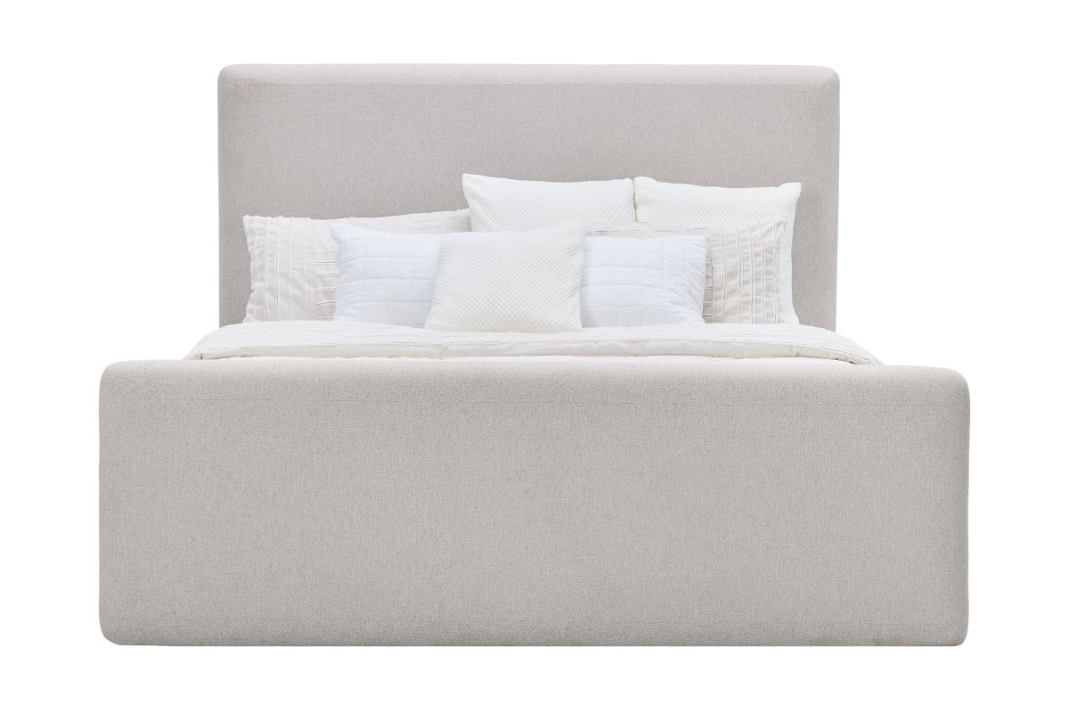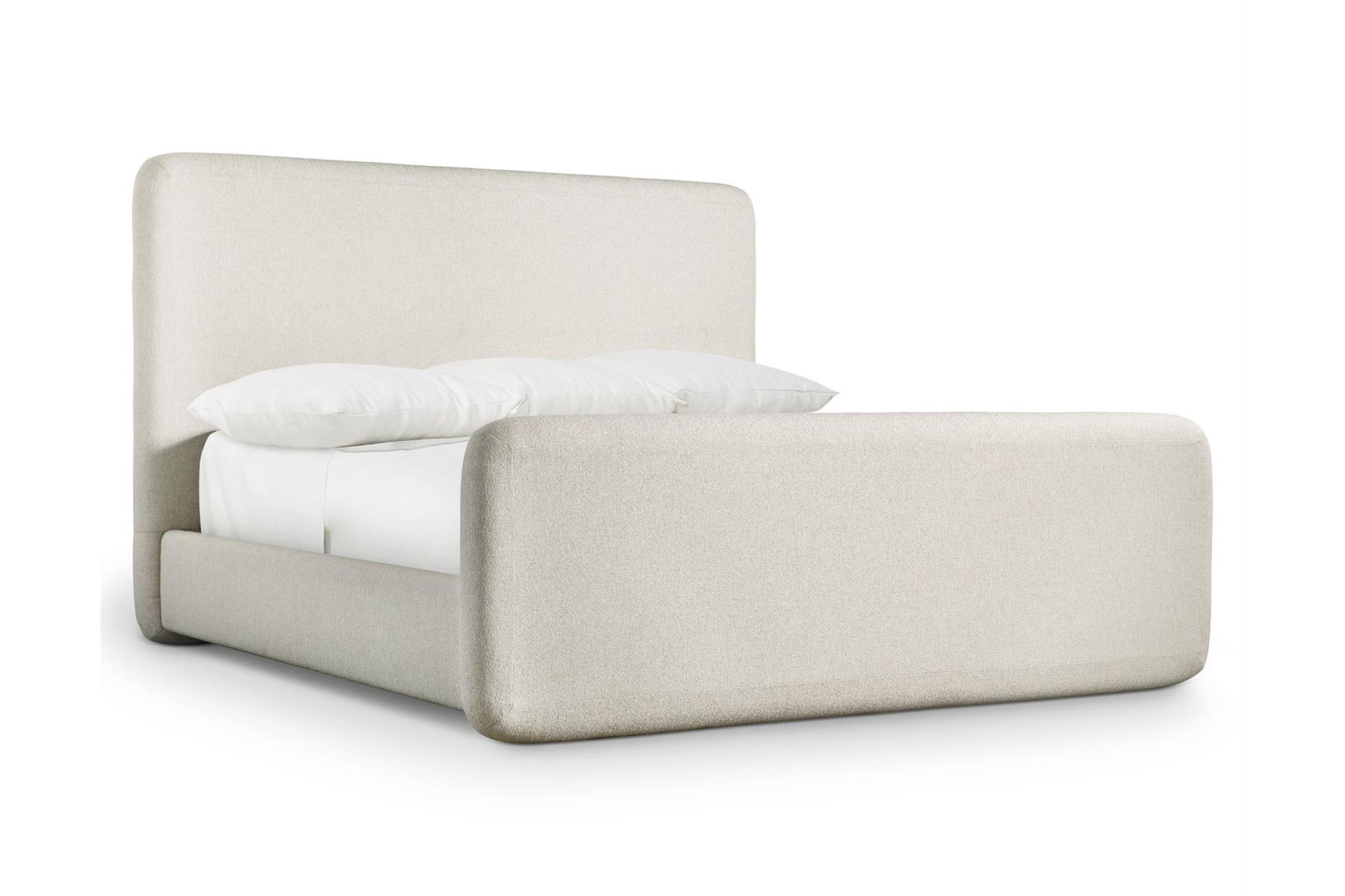 The Antibes panel bed is formed with rounded and lushly upholstered panels for the headboard and footboard. Connected by upholstered side panels, the bed has a calm and serene organic style. The bed can be customized with other fabric options.