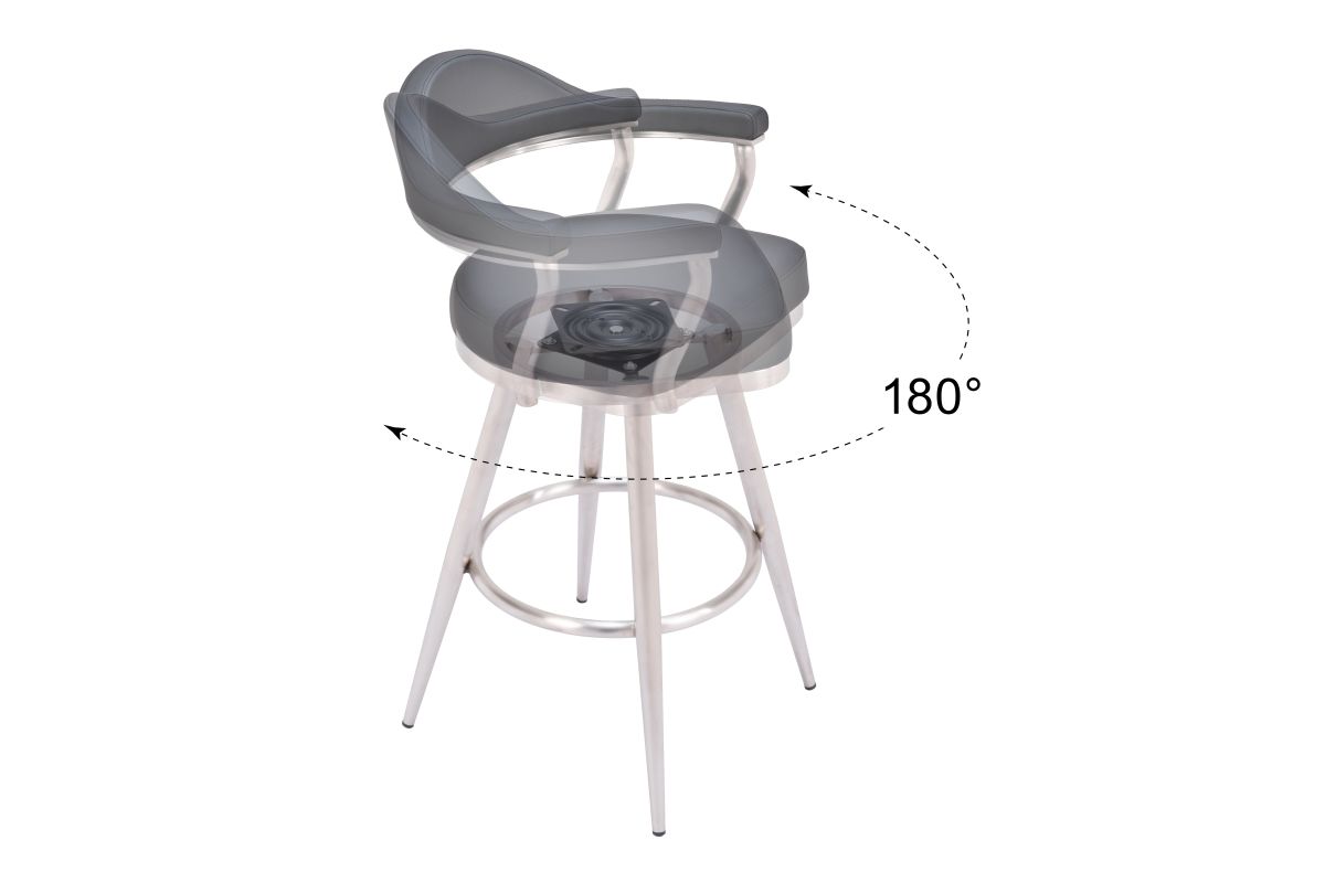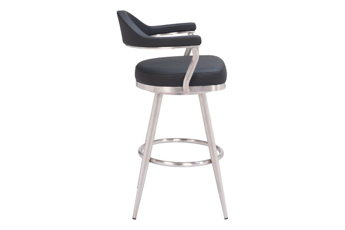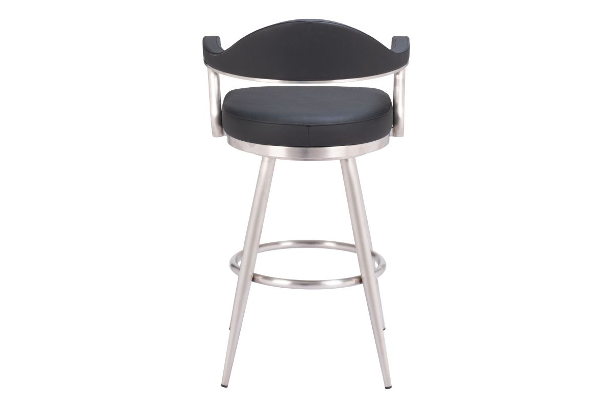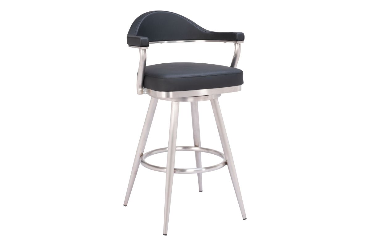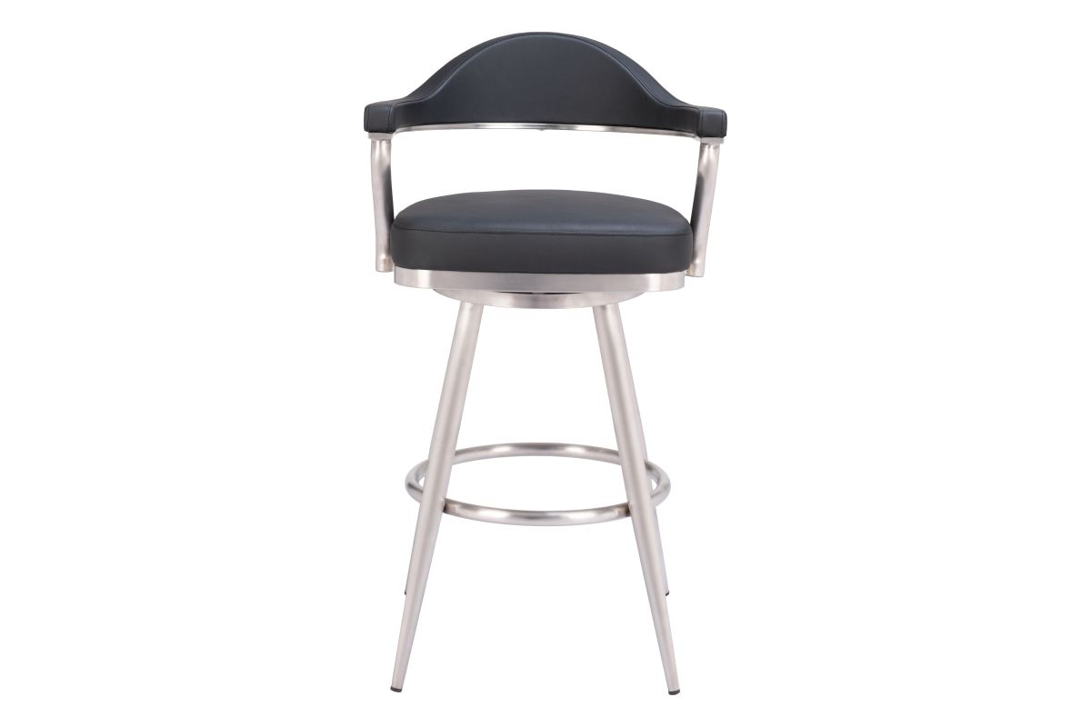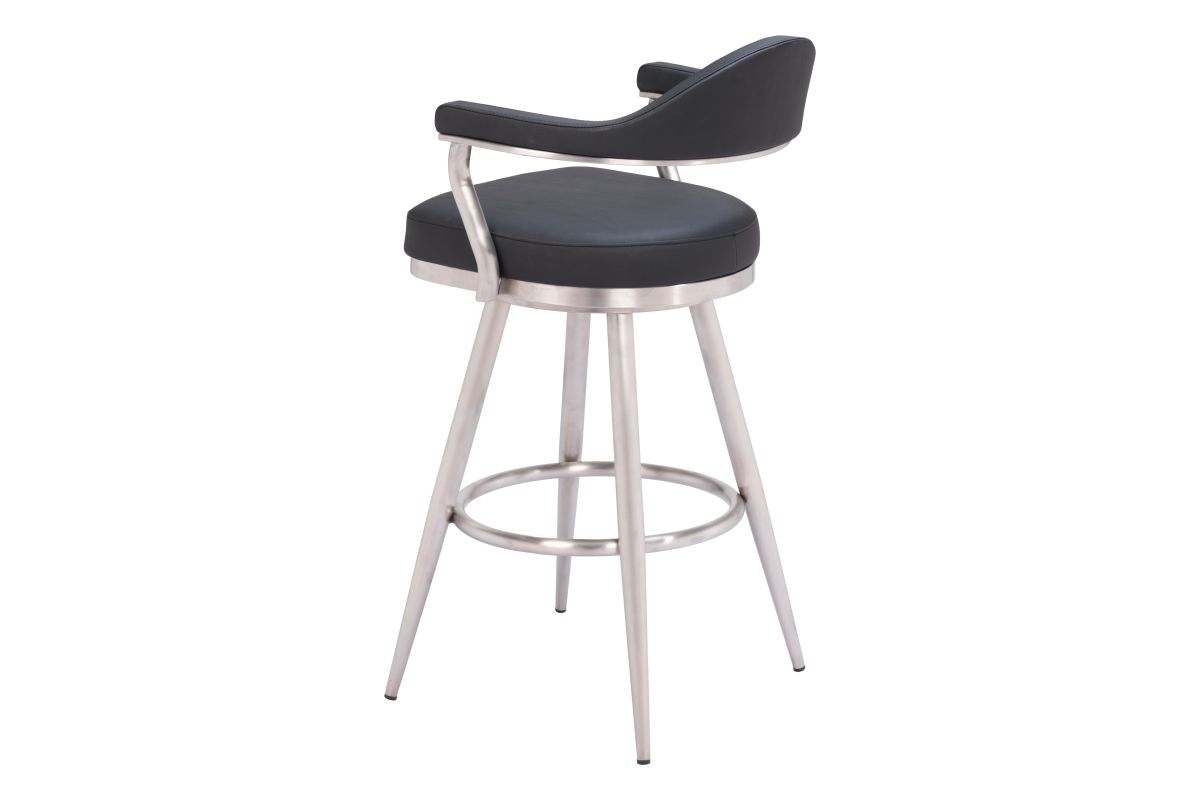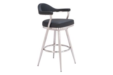 Unleash the epitome of style and comfort with the Vagur Swivel Barstool, a masterpiece that effortlessly combines deco, glam, and modern design elements. Featuring a sleek brushed steel frame and a luxurious vinyl seat and back, this swivel chair exudes opulence and sophistication, making it a captivating addition to any hospitality or residential setting. Get ready to redefine your seating experience with the Vagur Swivel, where elegance and functionality come together in perfect harmony.
