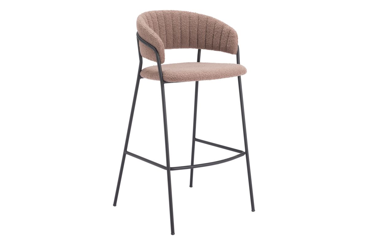 This barstool has a beautifully wrapped seat and back with a fine frame. This chair combines mid-century modern with glam and decor elements and works well in space, residential, or hospitality.