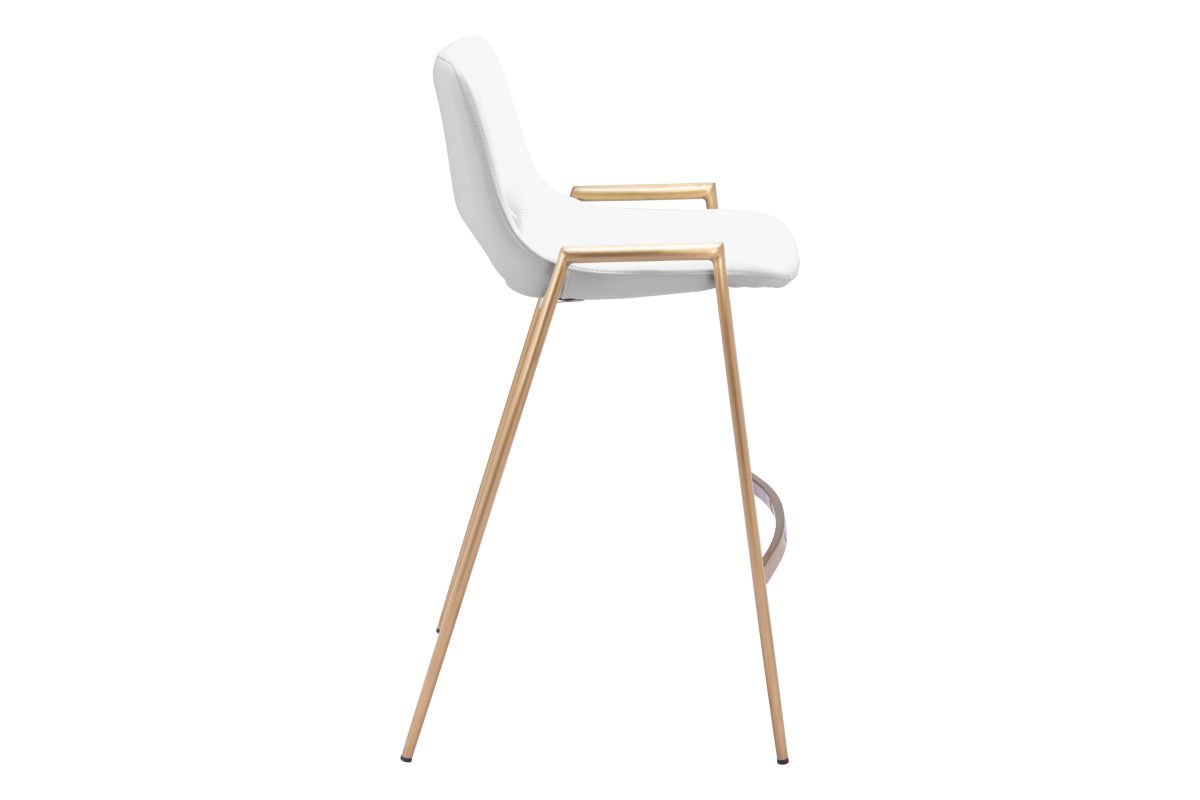 This counter stool has mid century modern urban lines and looks great in any space, with a heavy duty vinyl covering sturdy steel frame and finished legs in gold semi-gloss finish frame, fits in any home kitchen, dining area, or bar and is durable for hospitality use.