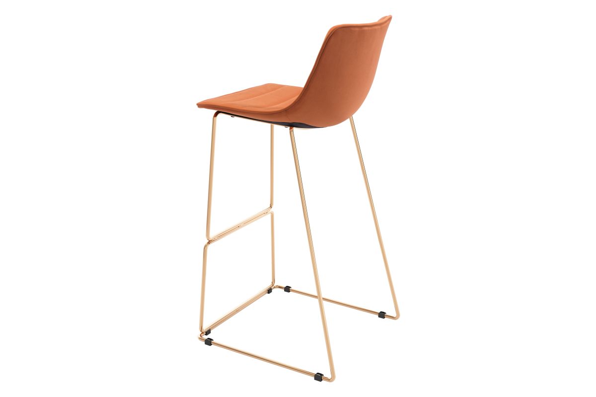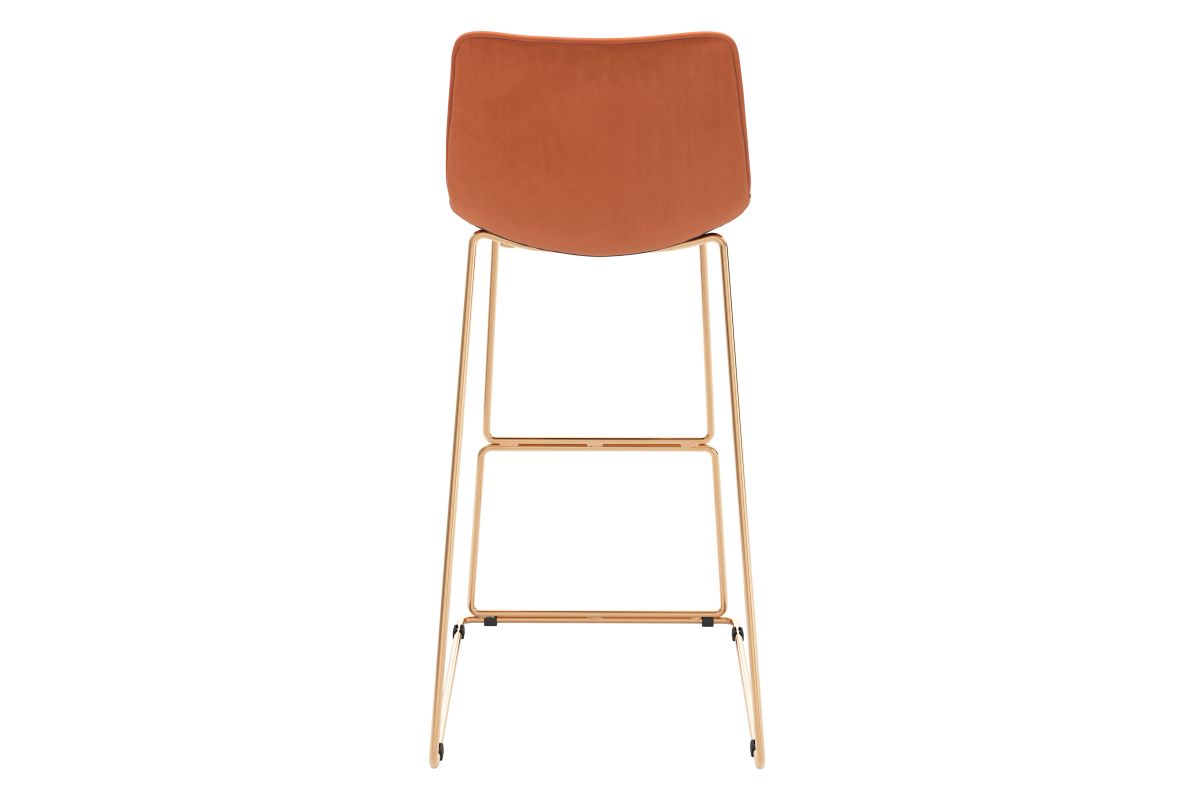 For a fun pop of color in your bar area. An orange fabric that screams soft in any setting. And a built-in footrest that adds to its modern design. A stool that refreshes the entire bar area.