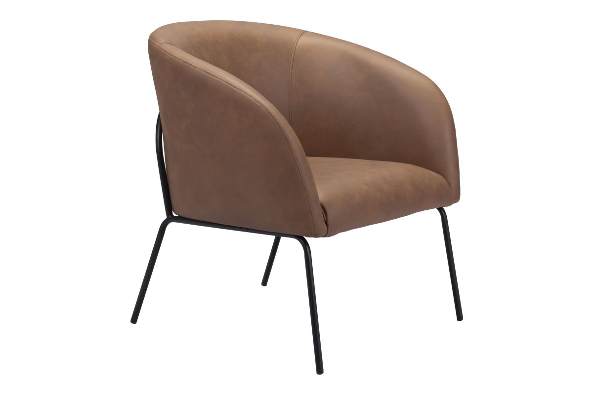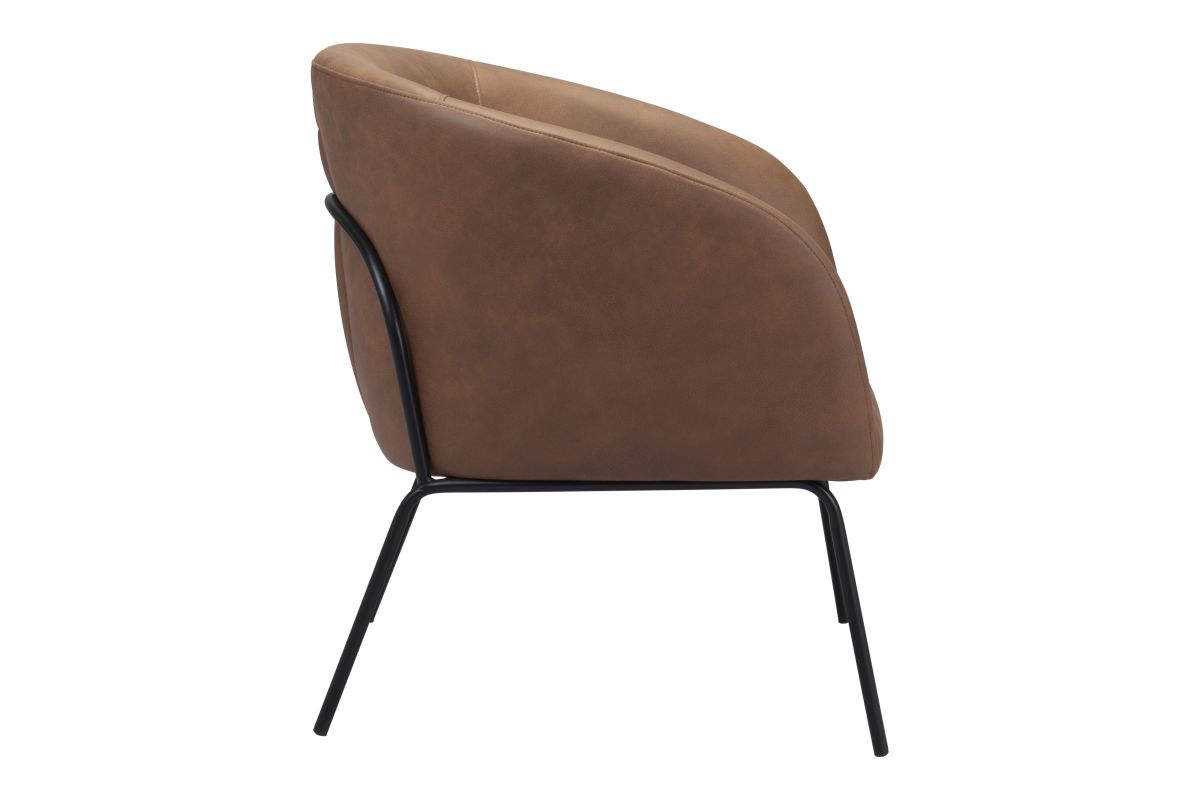 The Quinten Accent Chair is covered with a vinyl and sits on powder coated steel legs. This piece is the perfect boho chic, deco retro addtion to any space, home or hospitality. Assembly not required.