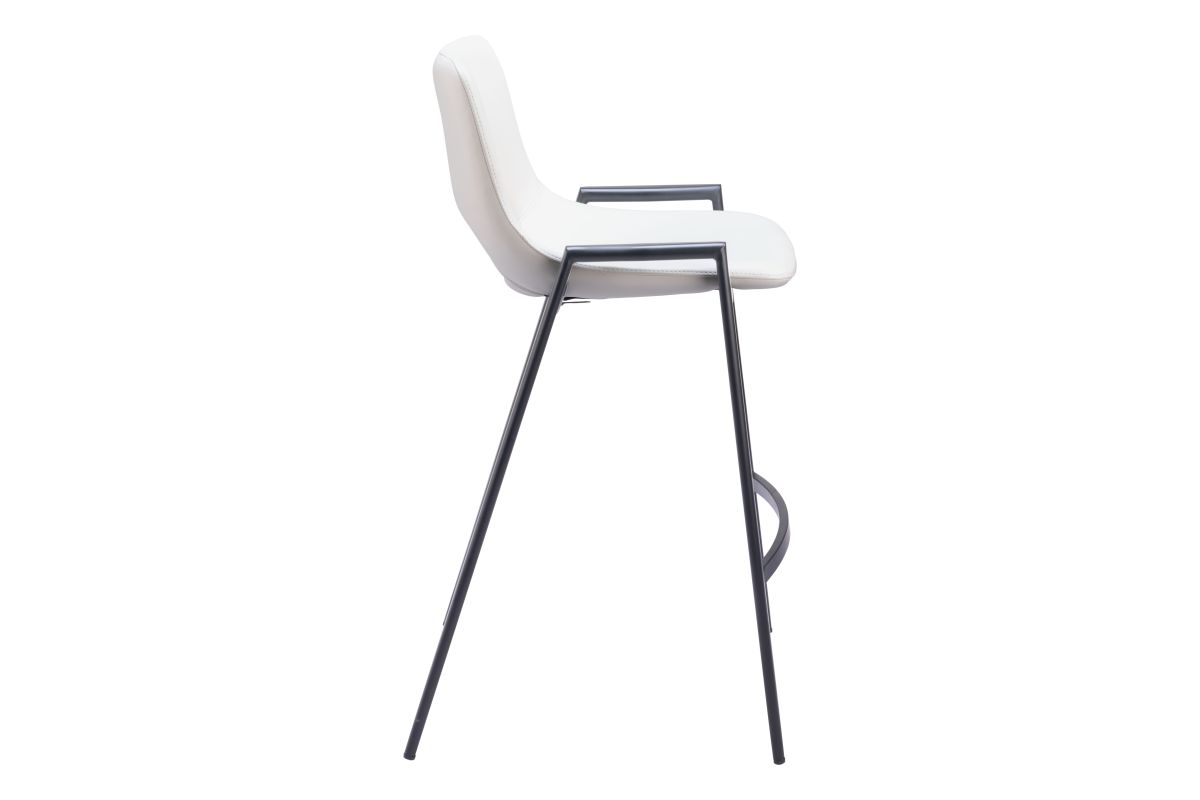 This counter stool has mid century modern urban lines and looks great in any space, with a heavy duty vinyl covering sturdy steel frame and finished legs in black powder coated steel frame, fits in any home kitchen, dining area, or bar and is durable for hospitality use.
