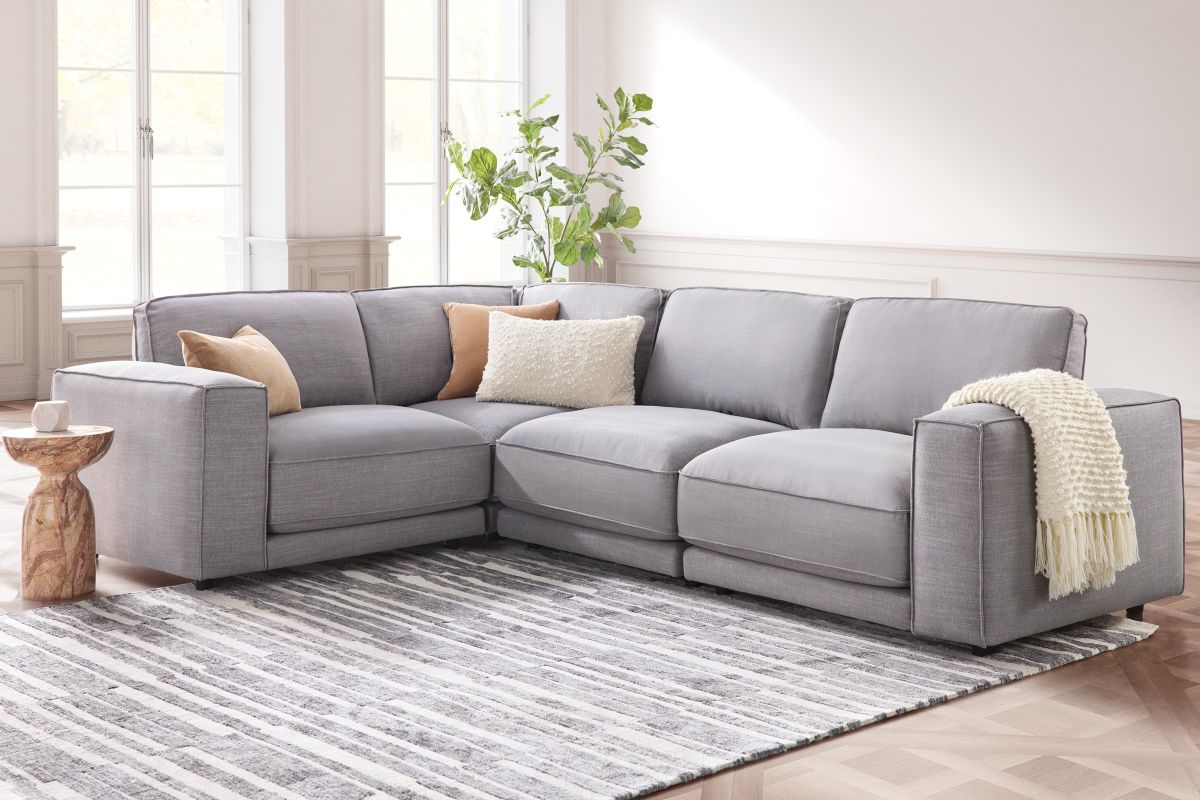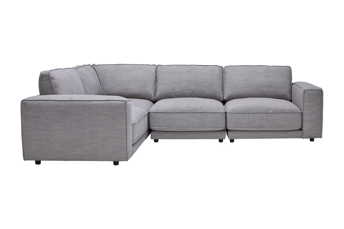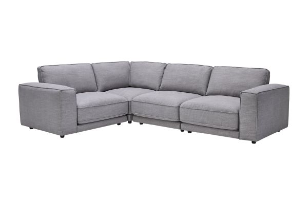 The Nathan Grey 4-Piece Sectional with Crypton Home Fabric combines modern elegance with family-friendly durability, making it perfect for households with kids and pets. Its stain-resistant fabric and spacious design ensure comfort and easy maintenance, allowing everyone to relax without worry. With plenty of room for cuddling or lounging, it’s a stylish and practical centerpiece for any living space. The Nathan 4-Piece Sectional is a versatile sectional featuring a left-arm facing chair, right-arm facing chair, armless chair, and a 90° corner seat.