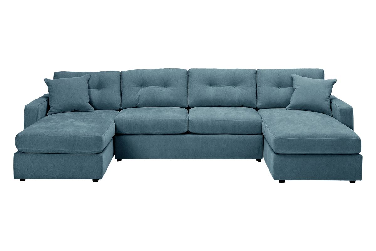 Discover the limitless possibilities of the ModularOne sectional, thoughtfully designed with comfort and flexibility in mind. This customizable seating solution features individual pieces that can be reconfigured to the shape you need. Game days, movie nights, sleepovers, and everyday relaxation are all better when the seating arrangement you want is always right at your fingertips. This soft, teal chenille includes Repreve yarn, made with recycled plastic bottles. The dual seating area has welted track arms, top-stitched seat cushions and button-tufted back cushions for an elegant silhouette. The armless loveseat component features a full size 4" innerspring mattress, perfect for over night guests and easily hidden away for gameday.