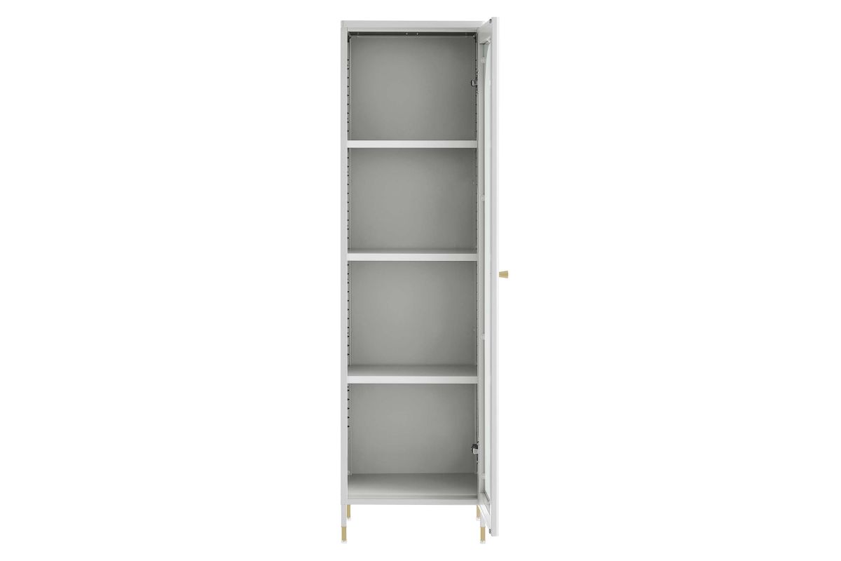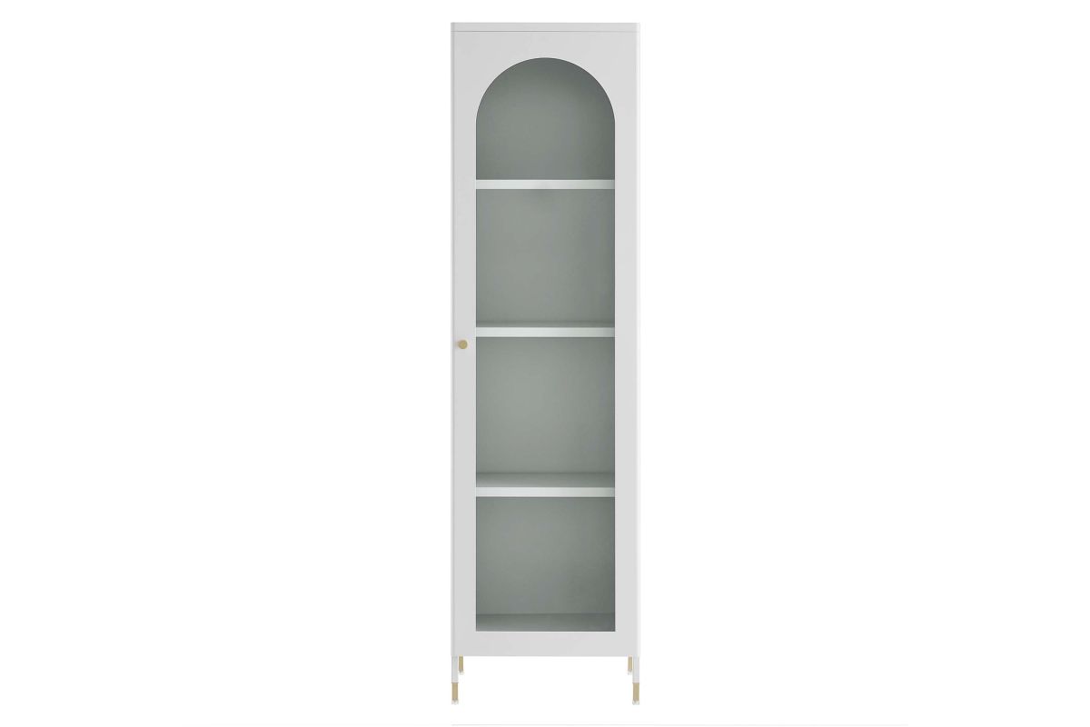 A versatile and stylish soultion, the Archway Tall Storage Cabinet offers room for both storage and display. Crafted from powder-coated cold-rolled steel plates, this storage cabinet offers durability and modern appeal. The cabinet features three height-adjustable shelves, a glass-front door with arched detail, and a copper-plated zinc alloy handle pull. With a multi-functional design, this storage cabinet is versatile in usage making it perfect for a variety of areas such as the living room, home office, entryway, dining room, and kitchen. This tall storage cabinet is ideal for organizing linens, office supplies, books, collectibles, home decor, and more. Equipped with adjustable foot pads for floor protection and stability, this stylish cabinet includes anti-tipping hardware for enhanced safety. Upgrade your storage options with Archway. Assembly required. Set Includes: One - Archway 16" Storage Cabinet