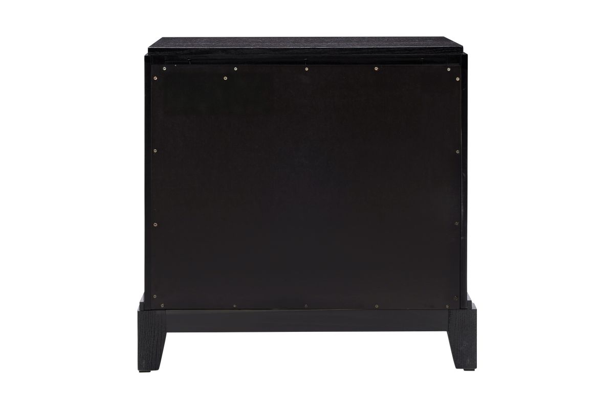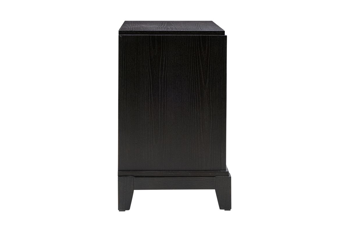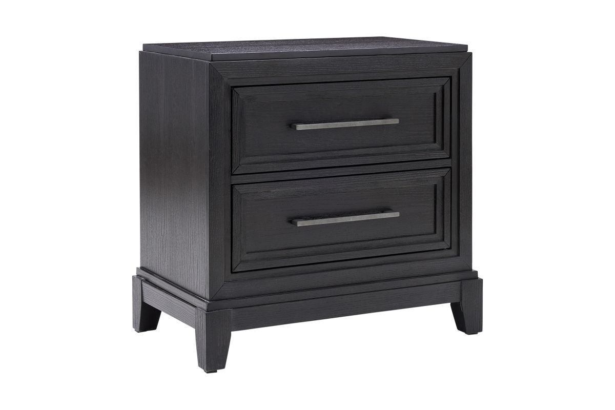 Enhance your bedroom with our Meredith Nightstand featuring Chrome Drawer Pulls and an Oak Grain Finish.