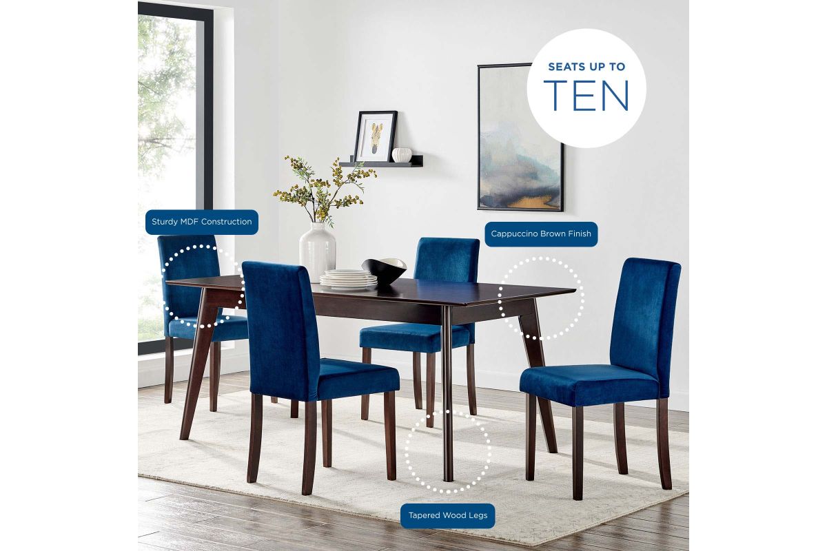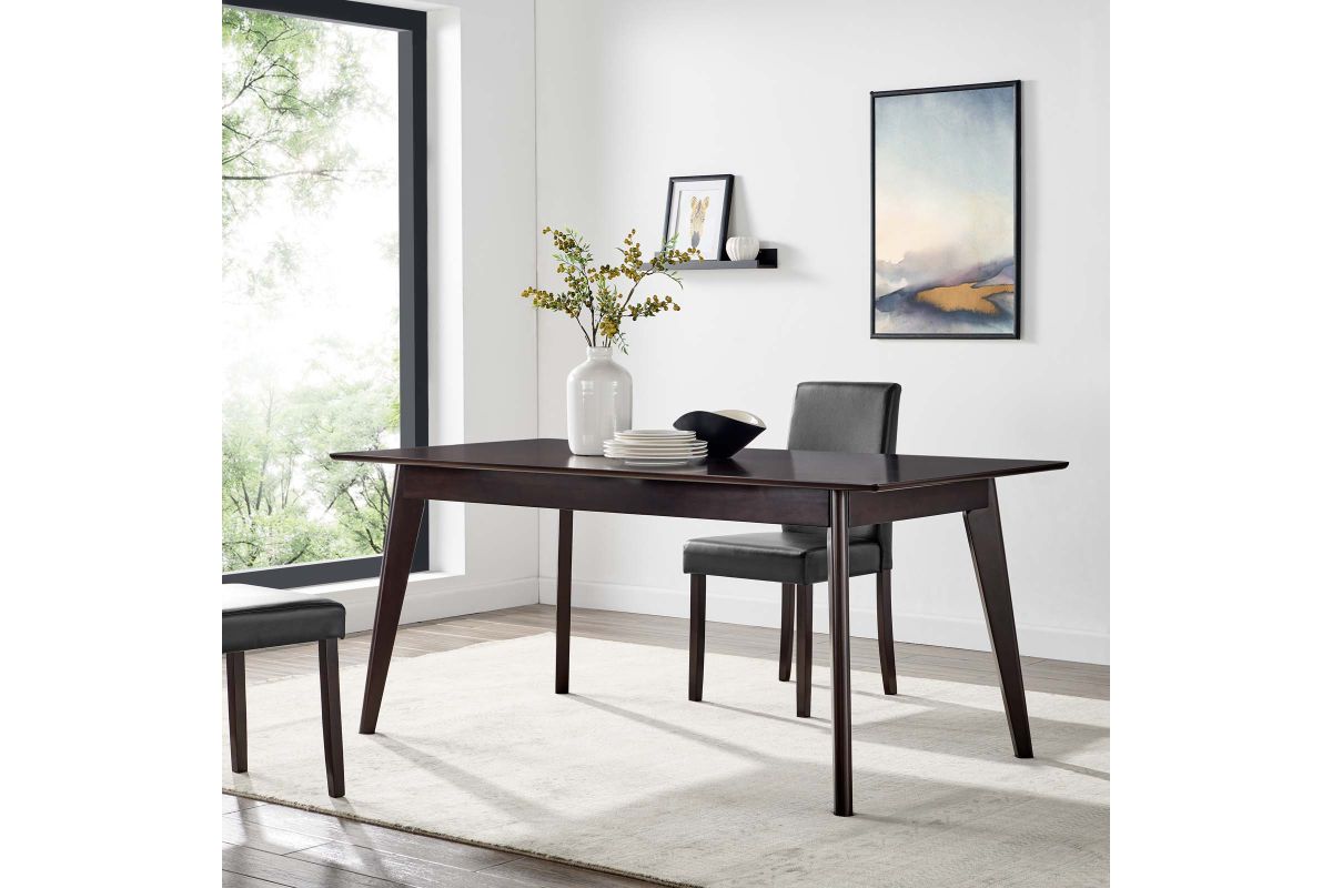 Explore new vistas with the Oracle 69" Rectangle Dining Room Table. Sturdily constructed from wood veneer and MDF with four tapered wood legs, this dining table possesses a sleek mid-century modern style. The simplicity and quietude of the Oracle Dining Table create the ability to effortlessly enhance any dining room, kitchen, breakfast nook, or dining area decor. Seats up to 8 people. Assembly Required.