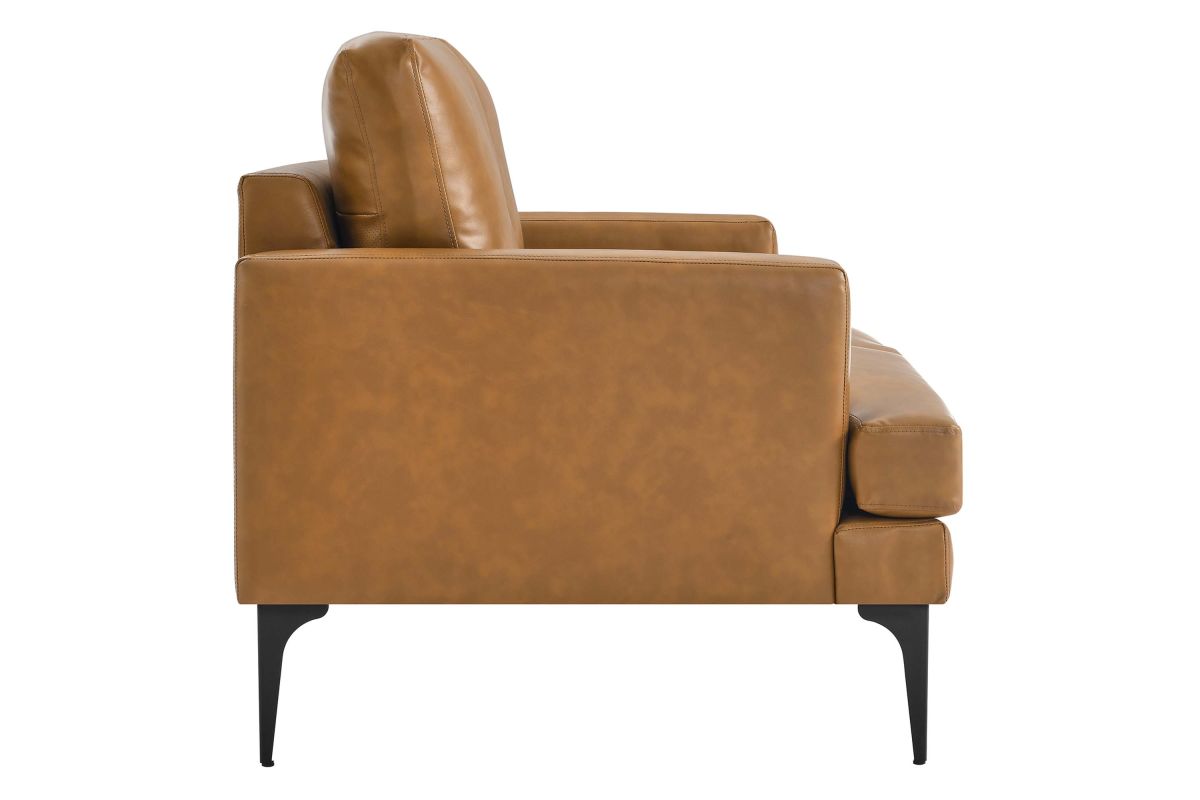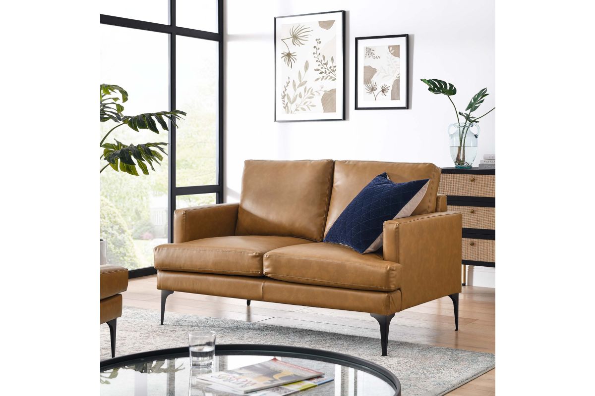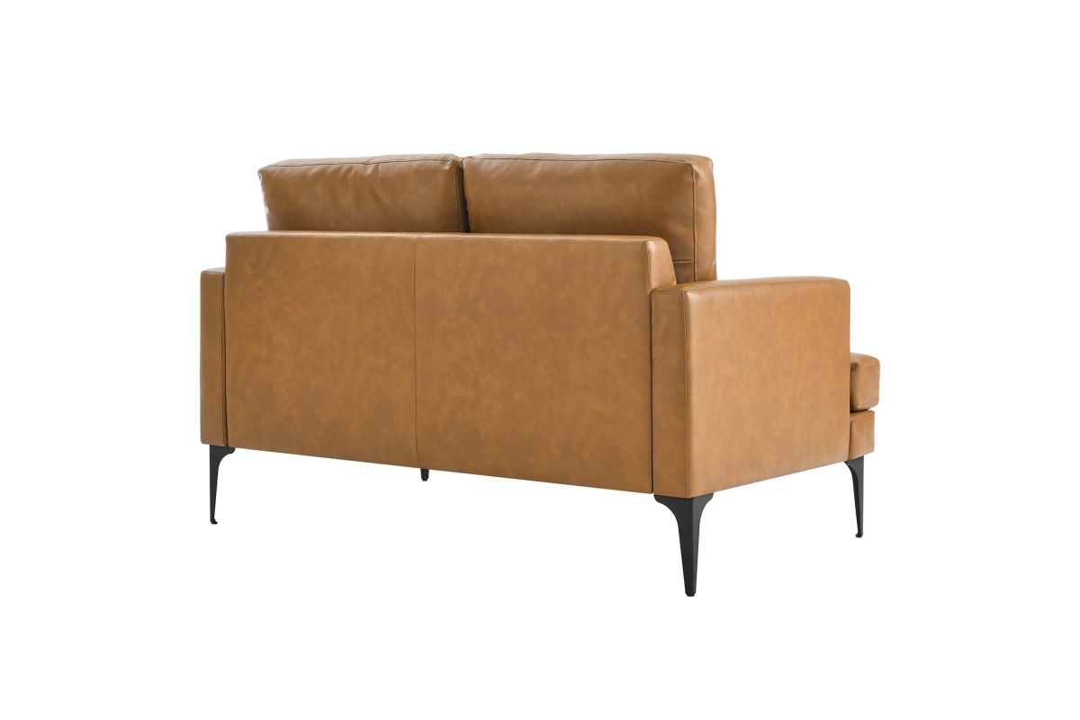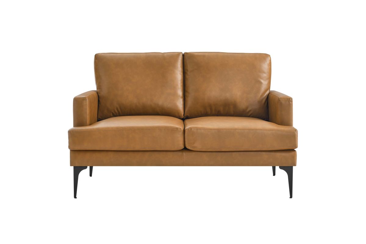 Abounding in luxe modernity, the Evermore Vegan Leather Loveseat delivers tailored elegance, rich texture, and a deep, comfortable seat to your living room, bedroom, entryway, lounge room, or home office. This upholstered two-seater sofa is covered in smooth vegan leather and padded in dense foam to offer a premium seating experience. The cushions are removable and feature zippered covers for easy cleaning. Resting on metal legs with non-marking foot pads, this loveseat makes a beautiful statement in the modern home or apartment. Assembly required. Weight Capacity: 662 lbs.