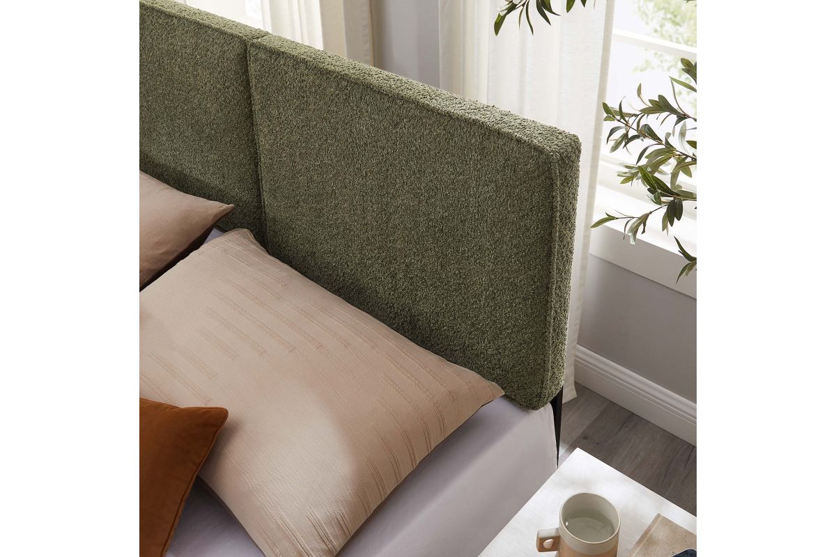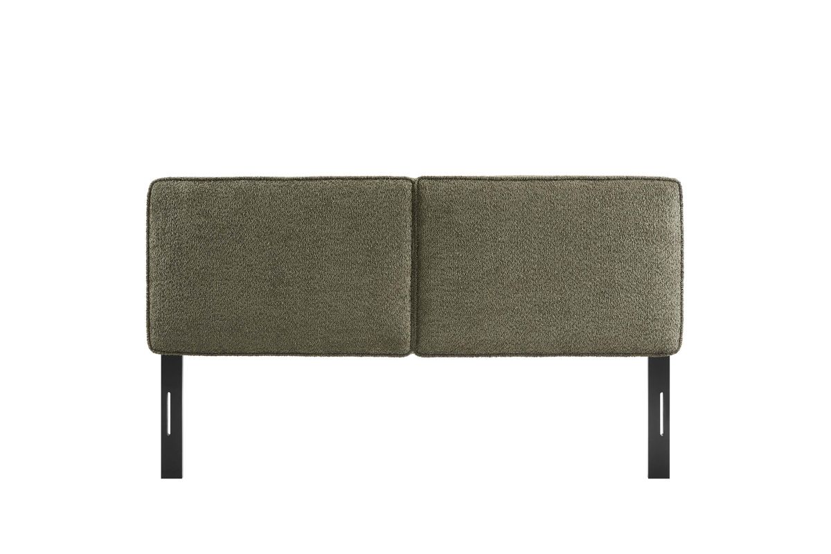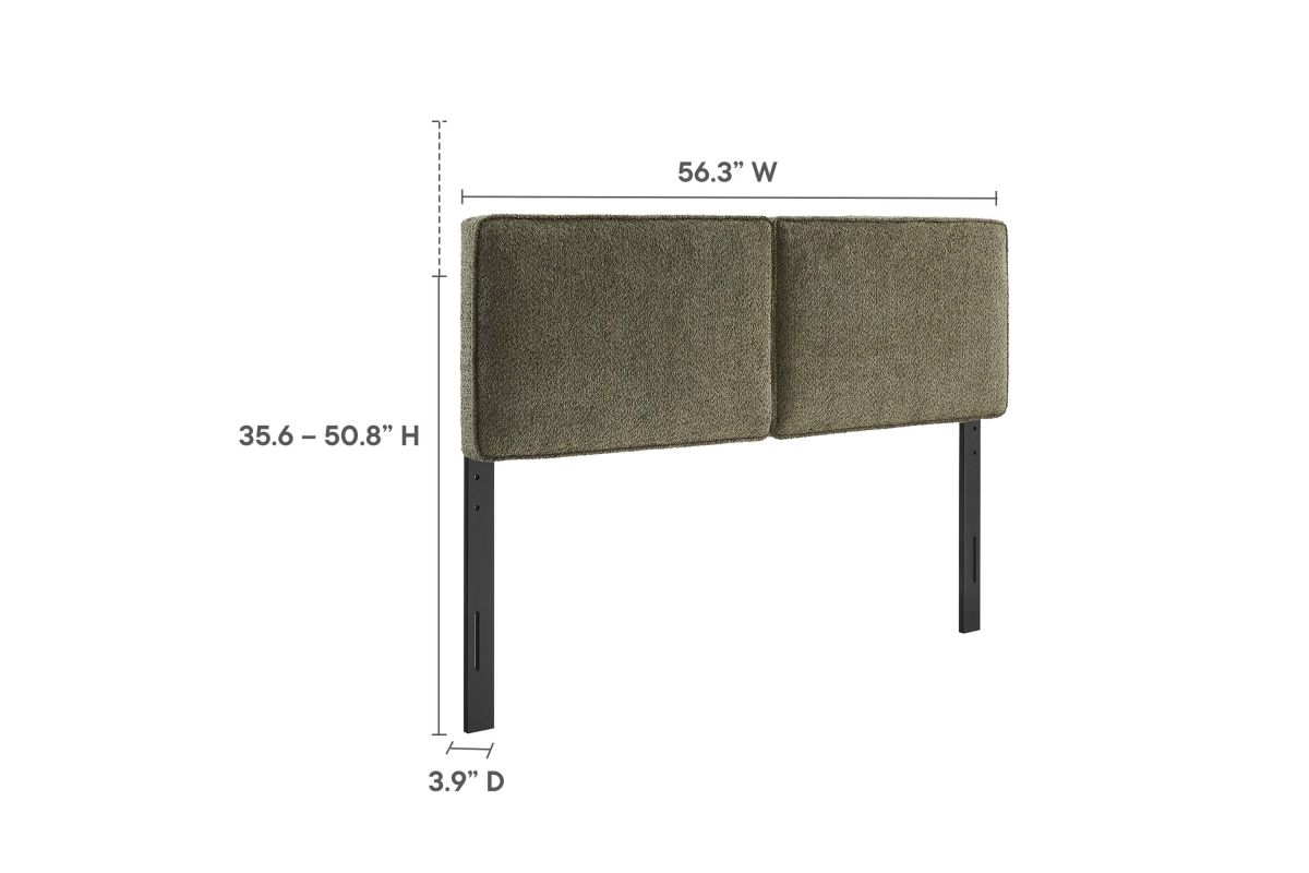 Embrace elegance and comfort in a guest bedroom, teenager's bedroom, or college dorm room with the Lindee Full Headboard, a statement piece that merges plush comfort with sophisticated design. This full size fabric headboard is upholstered in textured boucle fabric that offers a tactile charm, and features French piping trim that outlines the dual panels. The dense foam padding and pillow-style design grants a soft, cushioned backdrop for nightly reading or relaxing in bed. Supported by solid wood legs and equipped with seven mounting positions, this full upholstered headboard provides both durability and versatility to fit various bed frames. The Lindee full size headboard is a transformative bedroom upgrade that combines form and function with an upholstered boucle headboard appeal, making it a quintessential element for any restful sanctuary. Assembly required.