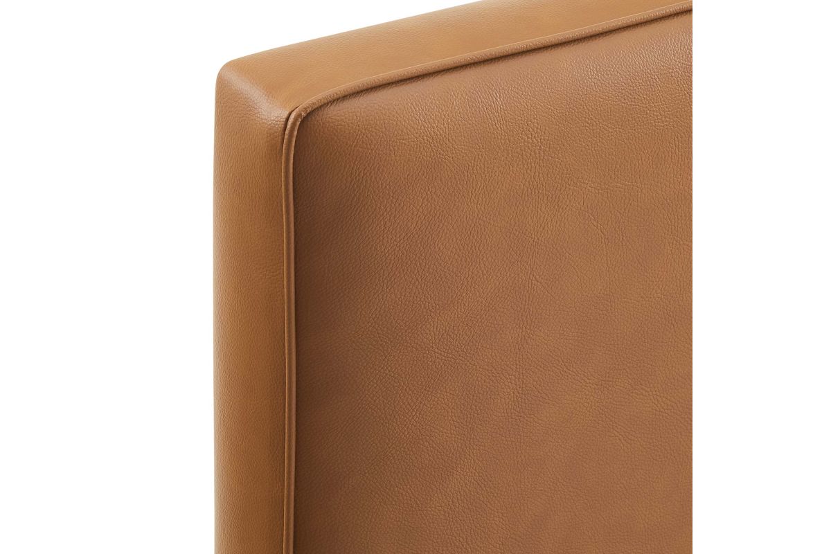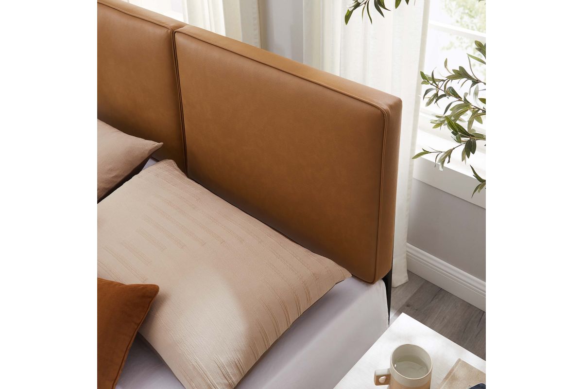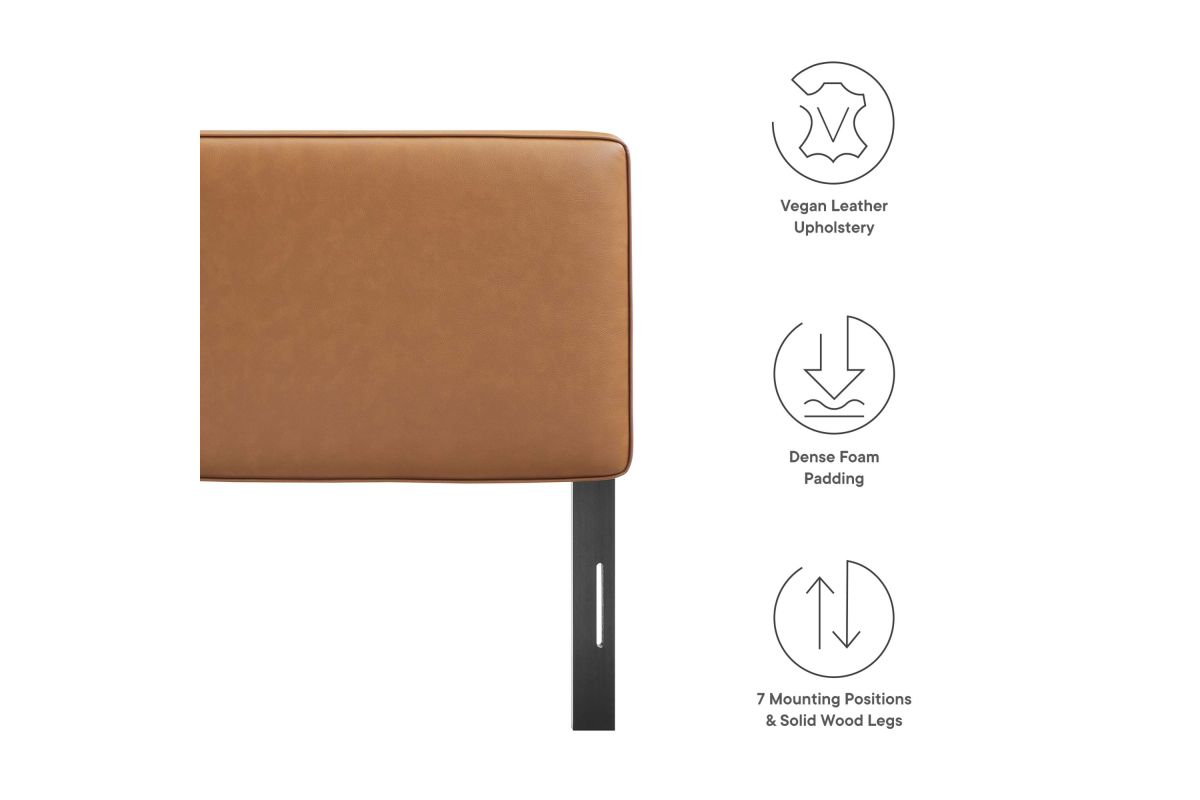 Embrace elegance and comfort in a primary bedroom or guest bedroom with the Lindee King Headboard, a statement piece that merges plush comfort with sophisticated design. This king size faux leather headboard is upholstered in high-quality vegan leather that offers a sleek, modern charm, and features French piping trim that outlines the dual panels. The dense foam padding and pillow-style design grants a soft, cushioned backdrop for nightly reading or relaxing in bed. Supported by solid wood legs and equipped with seven mounting positions, this king upholstered headboard provides both durability and versatility to fit various bed frames. The Lindee king size headboard is a transformative bedroom upgrade that combines form and function with an upholstered headboard appeal, making it a quintessential element for any restful sanctuary. Assembly required.