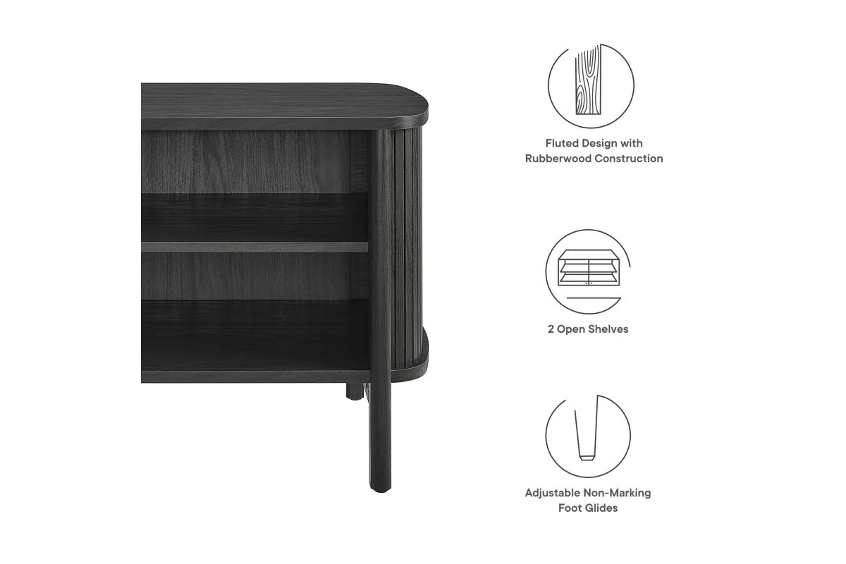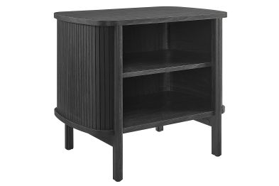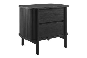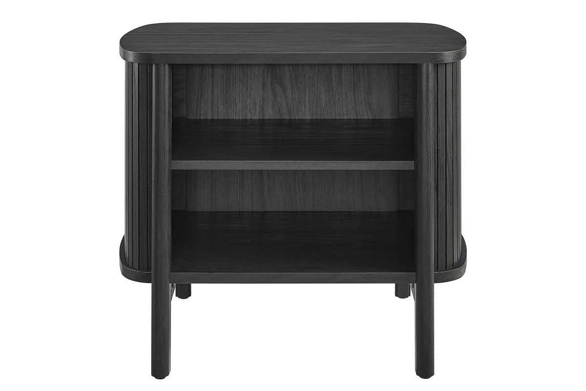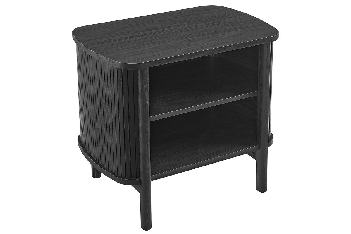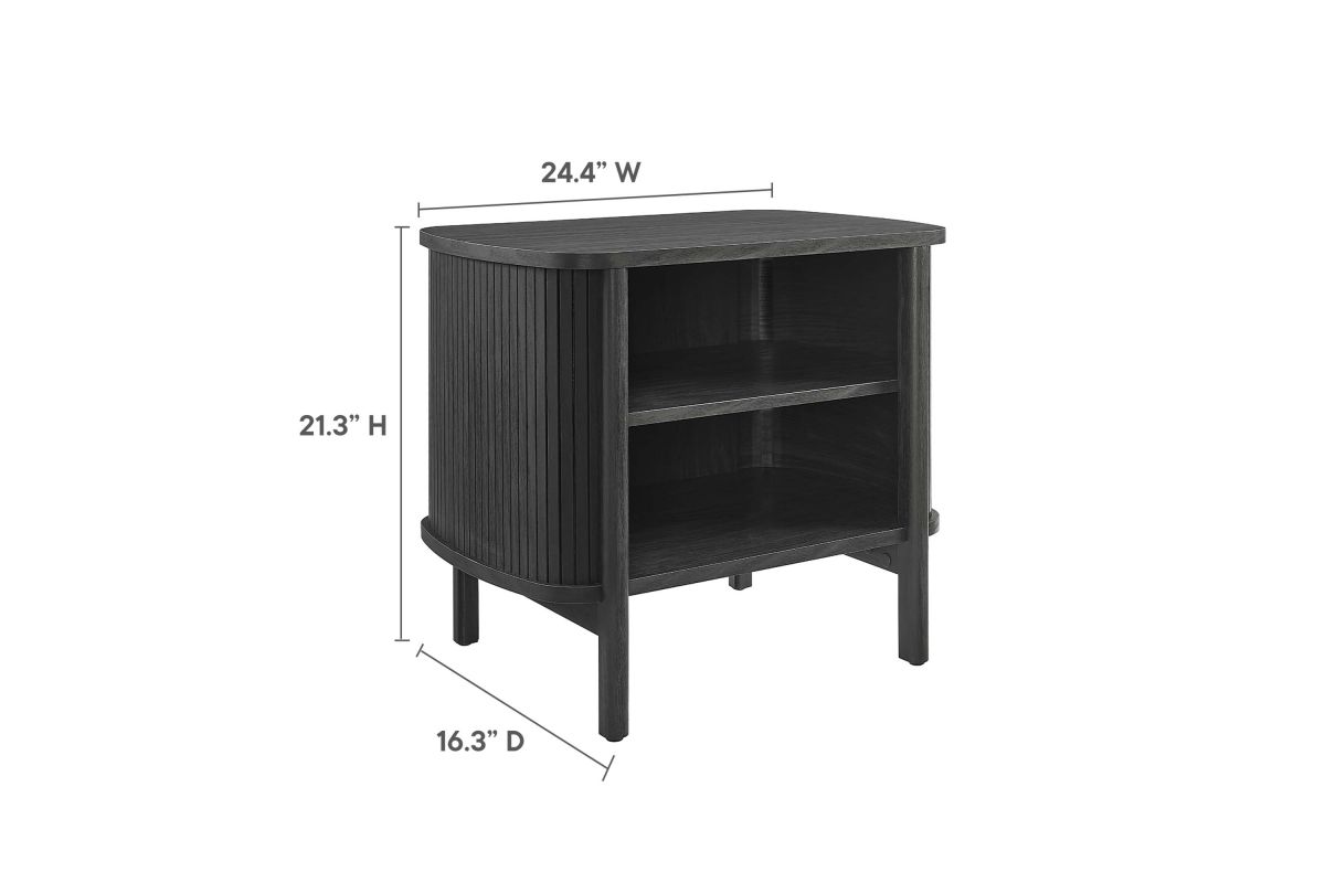 Revolutionize your bedroom or apartment decor with the Cadence Open Storage Nightstand. This modern nightstand is perfect at your bedside, offering both style and functionality. The unique design features rounded corners and fluted details, adding a stylish flair to any space. Crafted from high-quality materials such as rubberwood, particleboard, and MDF, the Cadence boho nightstand is designed for longevity and showcases a beautiful wood grain laminate, enhancing the organic aesthetics of your bedroom or living space. This open shelf nightstand has two storage compartments to comfortably support books, decorative items, or nighttime essentials. It includes non-marking foot glides for added stability. The Cadence fluted nightstand is a multi-functional piece that elegantly combines practicality with elegance and is versatile enough to serve as an open shelf side table, living room end table, or small accent table. Assembly required. Tabletop Weight Capacity: 79 lbs. Each Shelf Weight Capacity: 57 lbs.