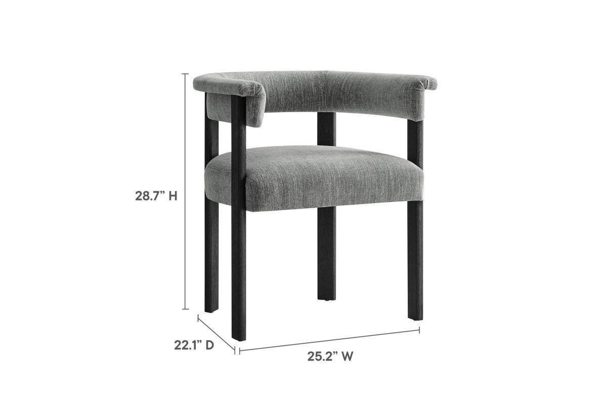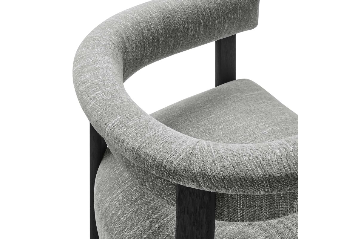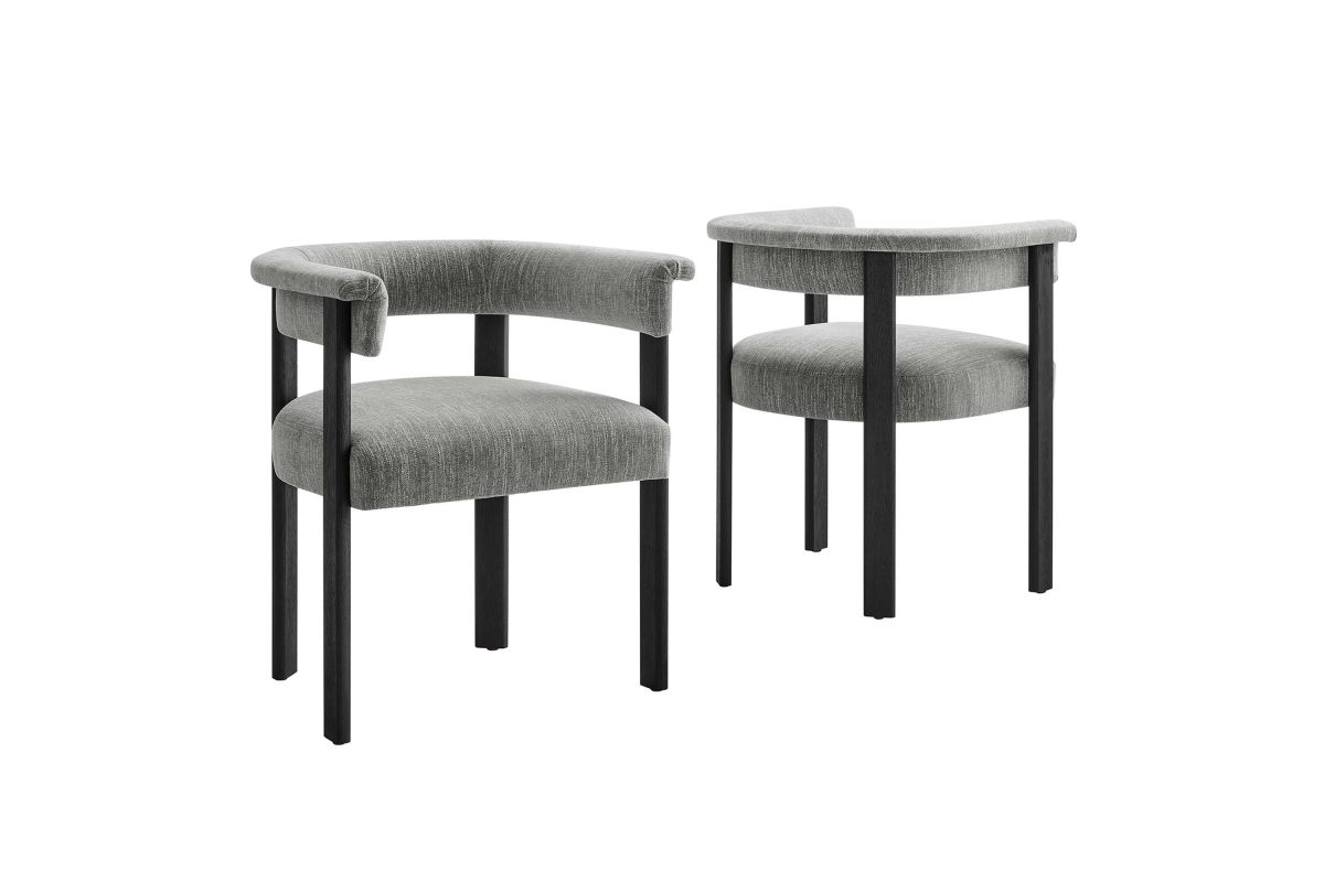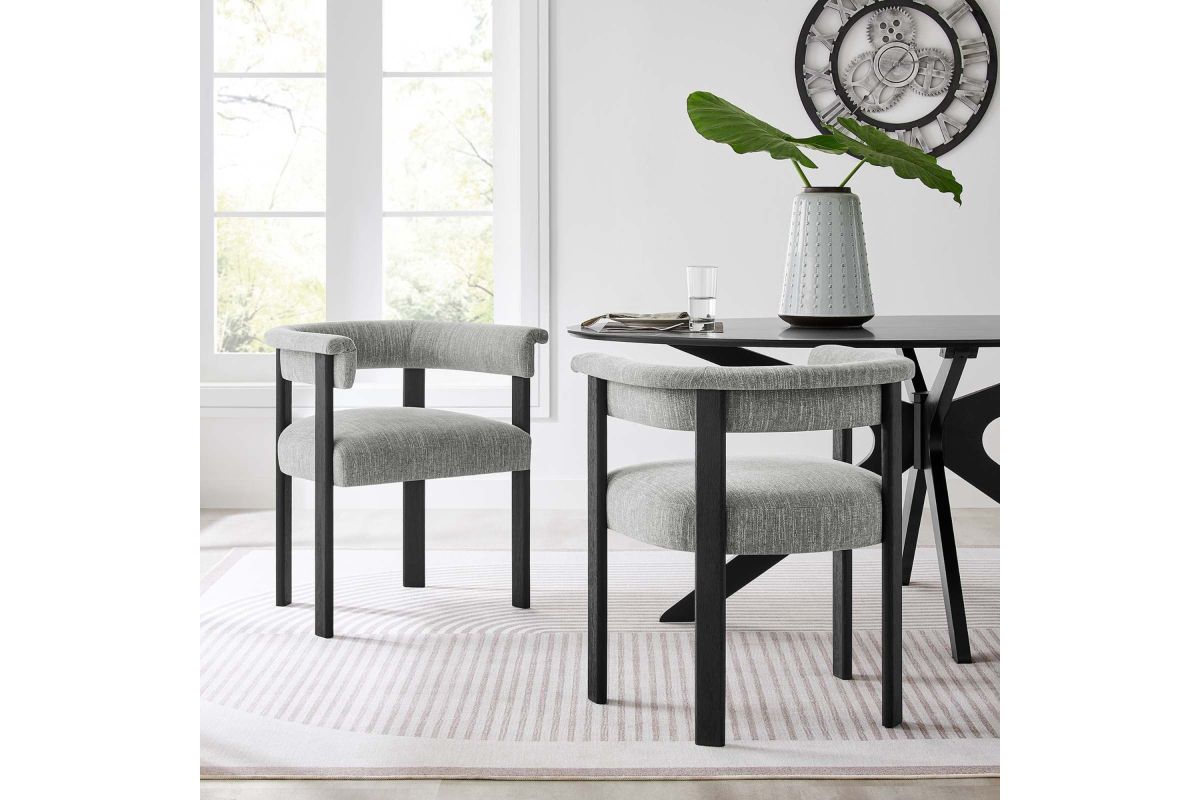 Feel the exquisite combination of modern chic and ultimate comfort with the Imogen Fabric Dining Chair Set of 2. These contemporary dining chairs feature a unique barrel back silhouette that cradles you in luxury with its curved backrest and open design, offering both support and style. The foundation of each dining room armchair is built on sturdy wood legs, for durability and strength to accompany its aesthetic appeal. The seats and backrests, constructed from high-quality plywood, are enveloped in a dense layer of foam and fabric upholstery, creating an inviting look that beckons you to sit and relax well after you've finished eating. The fixed seat and cushion design provide a seamless, clean look that complements any dining table with grace. These curved back dining chairs are equipped with non-marking plastic foot pins, protecting your flooring. Perfectly suited as an accent chair or part of your kitchen & dining room ensemble, this set of two rounded back dining chairs seamlessly integrates with a variety of decor themes, from modern farmhouse to contemporary and minimalist aesthetics. Easy to assemble and designed with the modern home in mind, the Imogen barrel chair set is not only a practical addition to your home but also a reflection of sophisticated taste. Dining Side Chair Weight Capacity: 331 lbs