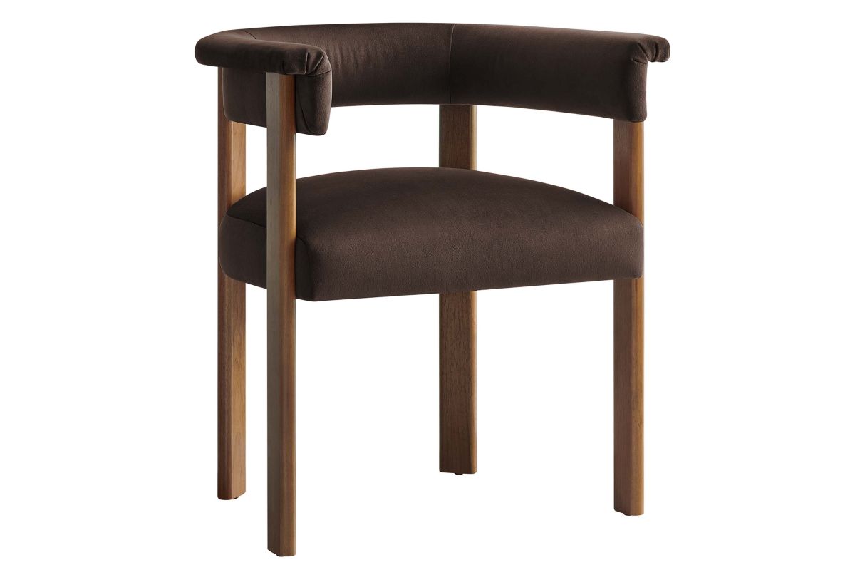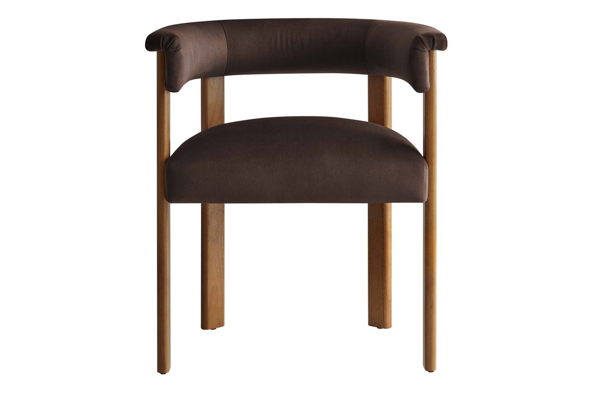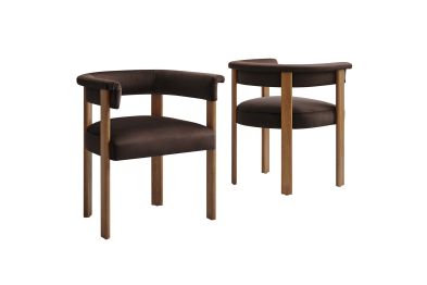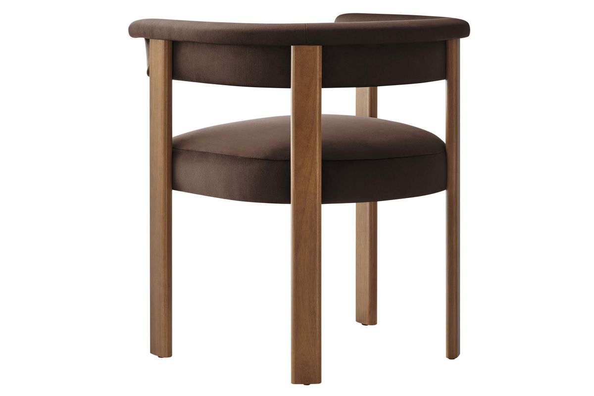 Feel the exquisite combination of modern chic and ultimate comfort with the Imogen Performance Velvet Dining Chair Set of 2. These contemporary dining chairs feature a unique barrel back silhouette that cradles you in luxury with its curved backrest and open design, offering both support and style. The foundation of each dining room armchair is built on sturdy wood legs, for durability and strength to accompany its aesthetic appeal. The seats and backrests, constructed from high-quality plywood, are enveloped in a dense layer of foam and stain-resistant performance velvet upholstery, creating an inviting look that beckons you to sit and relax well after you've finished eating. The fixed seat and cushion provide a seamless, clean look that complements any dining table with grace. These curved back dining chairs are equipped with non-marking plastic foot pins, protecting your flooring. Perfectly suited as a velvet accent chair or part of your kitchen & dining room ensemble, this set of two rounded back dining chairs seamlessly integrates with a variety of decor themes, from modern farmhouse to contemporary and minimalist aesthetics. Easy to assemble and designed with the modern home in mind, the Imogen barrel chair set is not only a practical addition to your home, but also a reflection of sophisticated taste. Dining Side Chair Weight Capacity: 331 lbs.