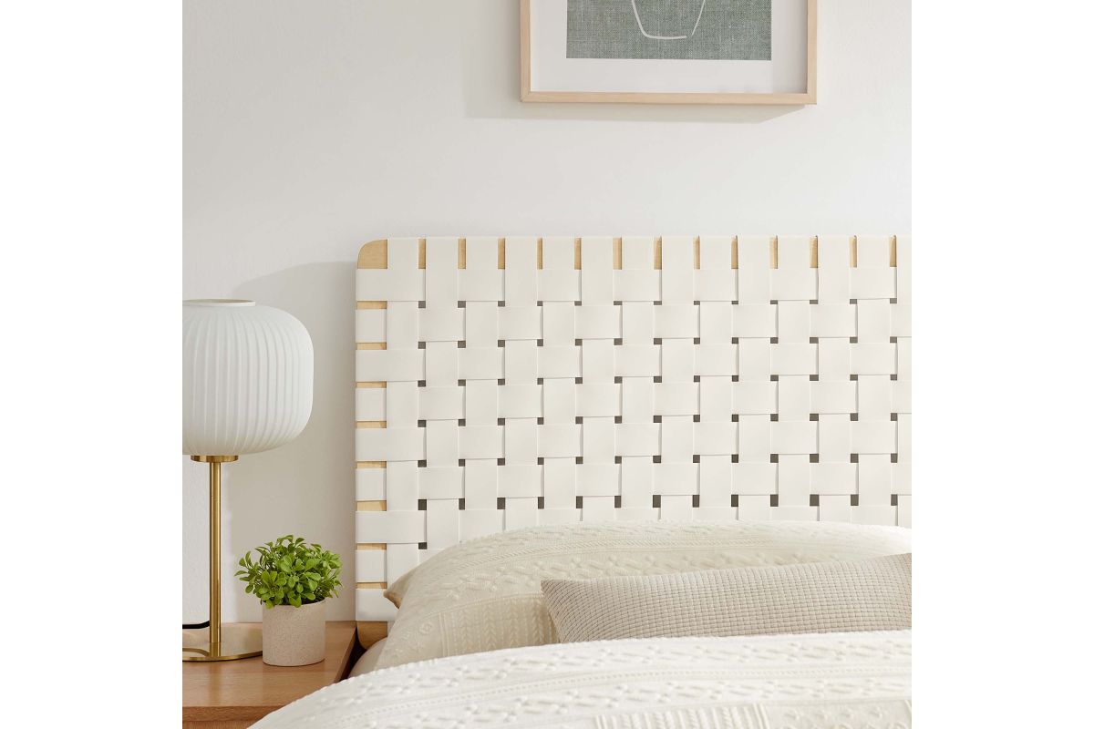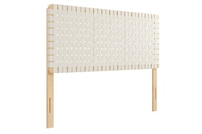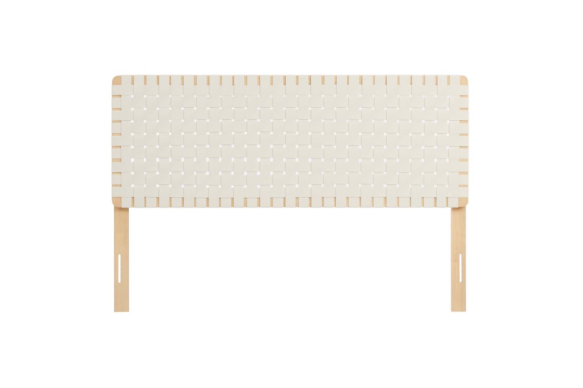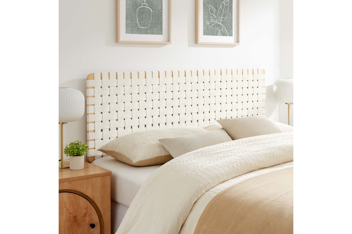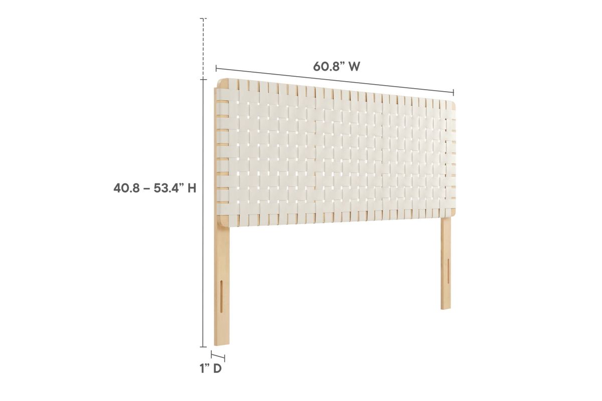 Elevate your bedroom's ambiance with the Sparta Vegan Leather Weave Queen Headboard, a perfect blend of robustness and artistic flair. Constructed meticulously with a solid wood frame, this queen size headboard introduces enduring stability and a touch of organic aesthetics. The standout feature is its basket woven vegan leather, adding a unique dimension and a tactile texture that captivates the eye. Perfect for a primary bedroom or guest bedroom, the Sparta Faux Leather Headboard offers a standing design with 5 mounting positions. This adaptability makes the queen bed headboard an ideal fit for any bedroom space. The fusion of durability, style, and versatility makes this queen bed headboard a distinguished choice for those seeking to infuse their sleeping space with sophistication and elegance. Assembly Required.
