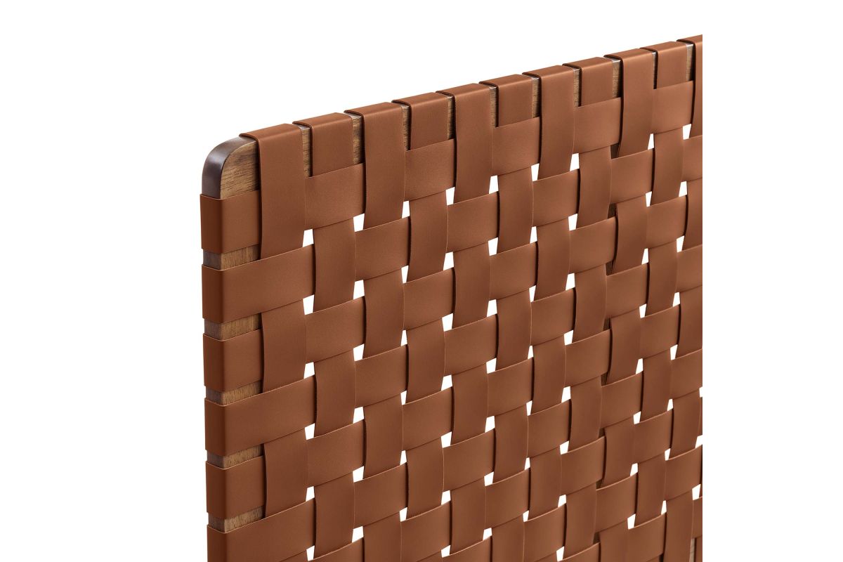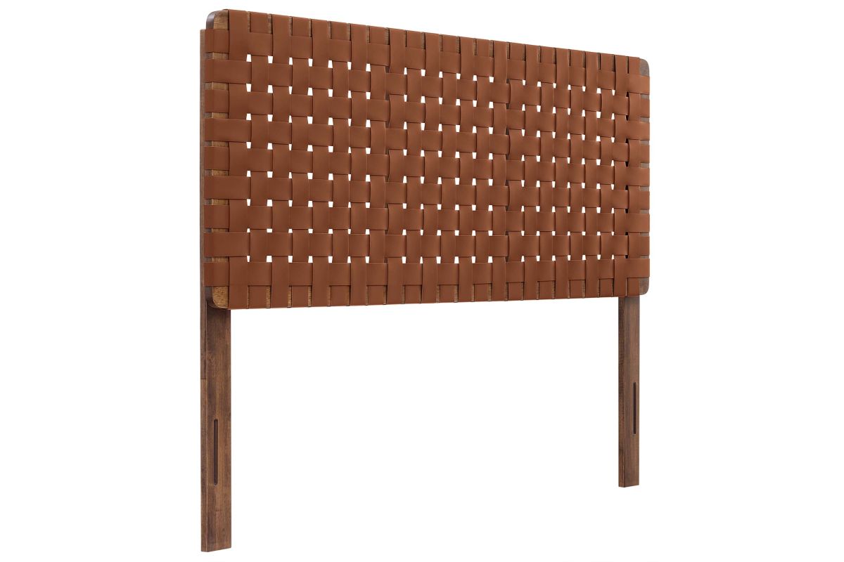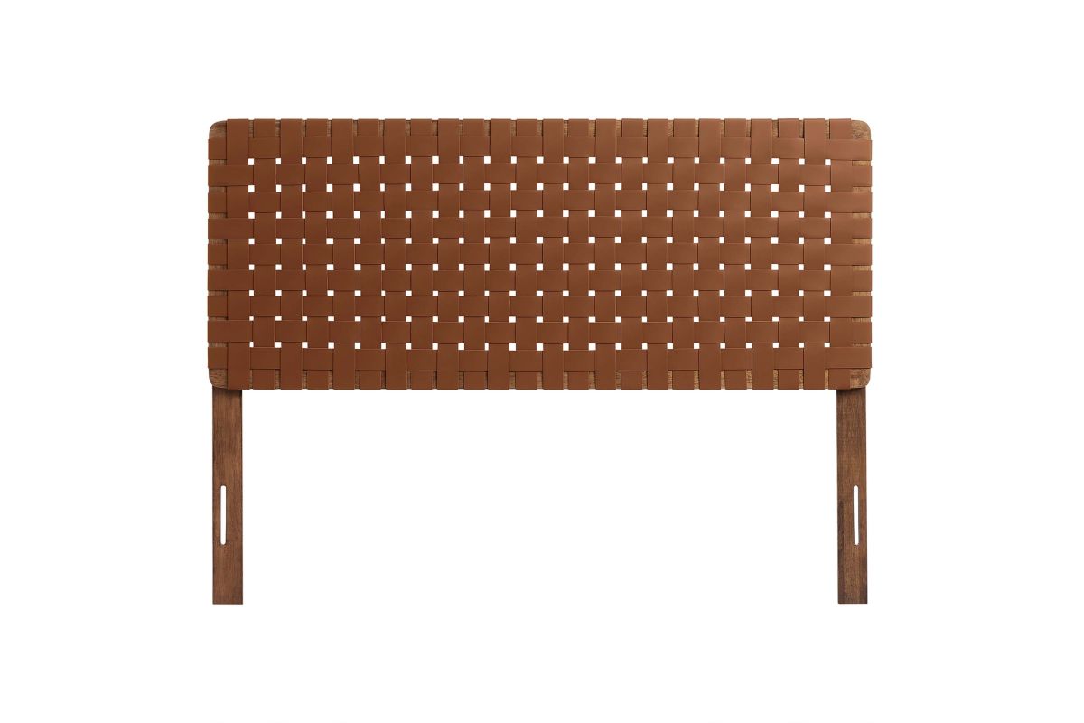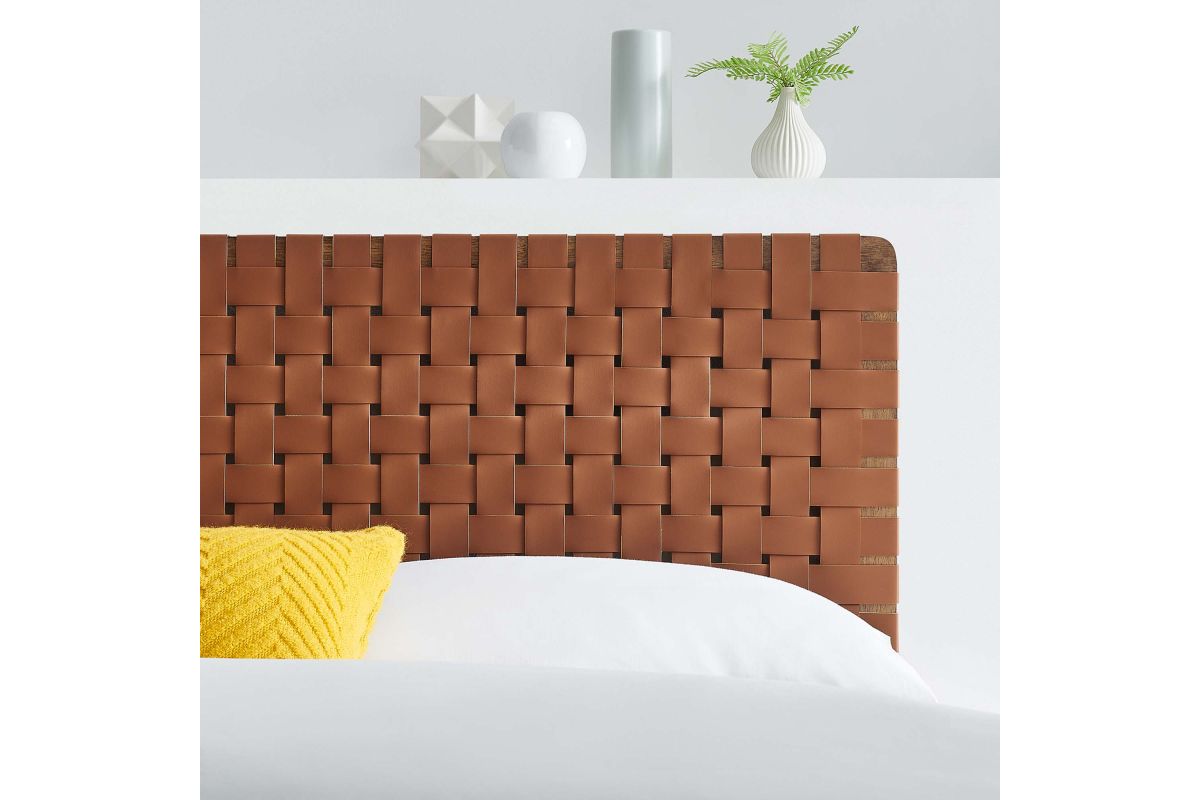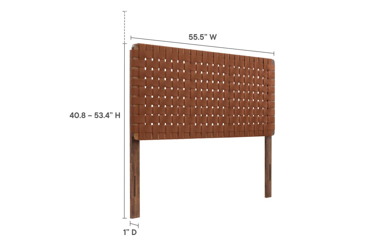 Elevate your bedroom's ambiance with the Sparta Vegan Leather Weave Full Headboard, a perfect blend of robustness and artistic flair. Constructed meticulously with a solid wood frame, this full size headboard introduces enduring stability and a touch of organic aesthetics. The standout feature is its basket woven vegan leather craft, adding a unique dimension and a tactile texture that captivates the eye. Perfect for a teenager's bedroom, guest room, or small primary bedroom, the Sparta Headboard offers a standing design with 5 mounting positions. This adaptability makes the full bed headboard an ideal fit for any bedroom space. The fusion of durability, style, and versatility makes this full bed headboard a distinguished choice for those seeking to infuse their sleeping space with sophistication and elegance. Assembly Required.