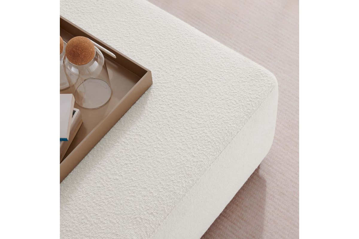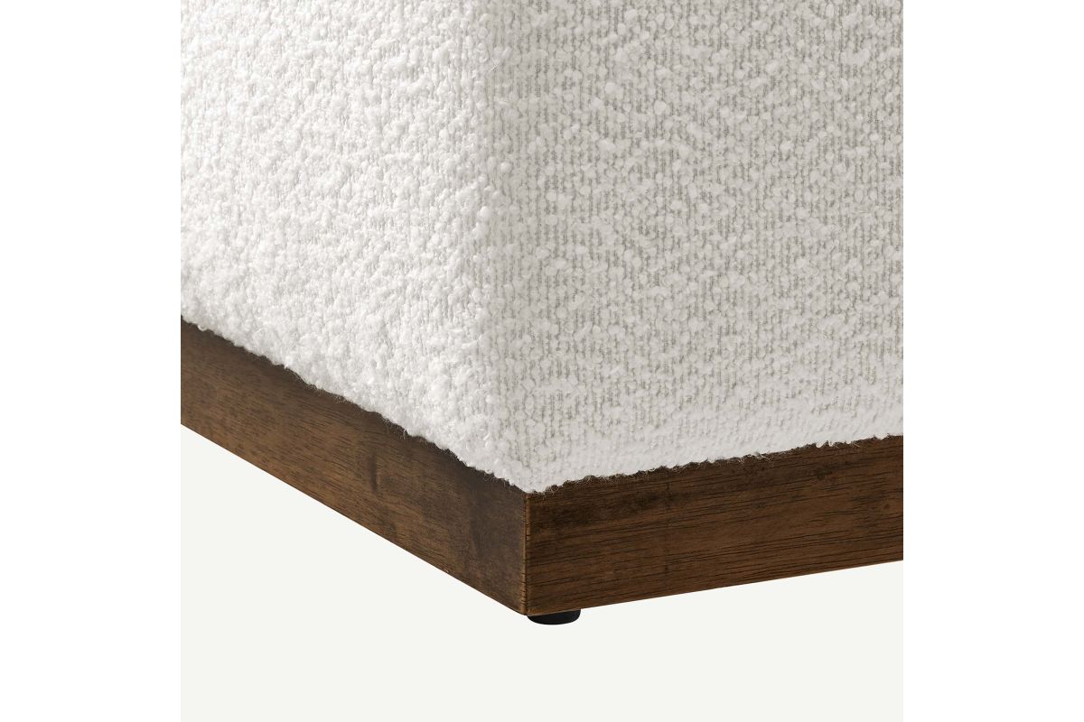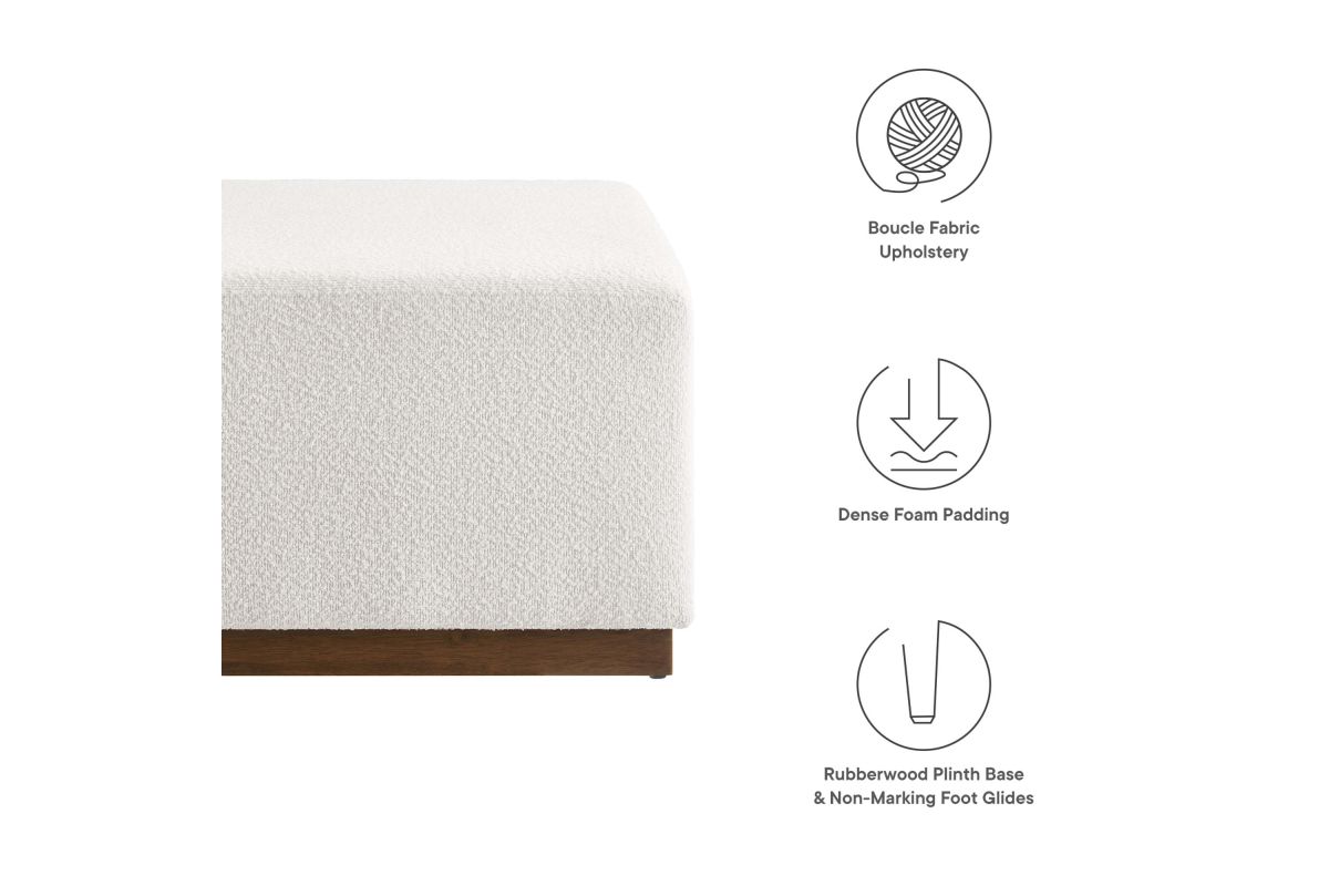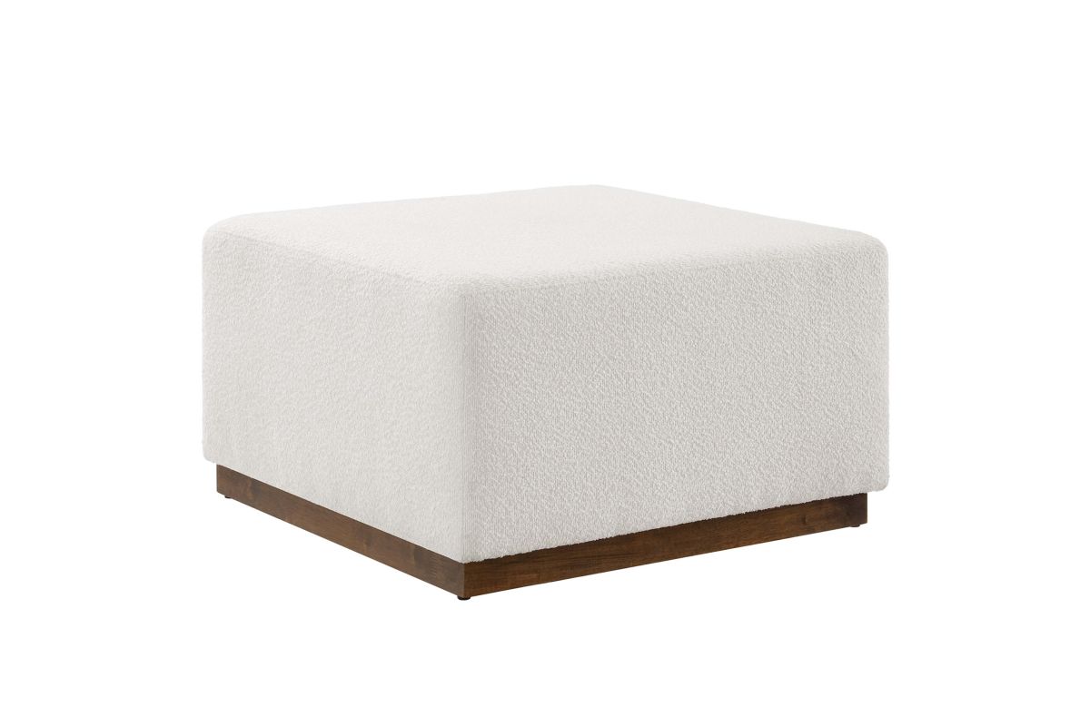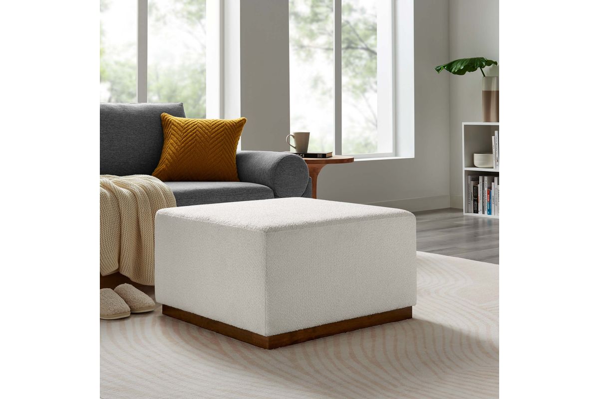 Delight in the elegance of the Tilden 28" Square Upholstered Ottoman, an ideal accent ottoman for modern homes, offices, or cozy apartments. Upholstered in boucle fabric with a nubby texture and French piping trim, this large ottoman footstool offers both luxury and durability. Its tailored silhouette complements contemporary decor, while the dense foam padding provides versatile use as a comfortable ottoman seat, large footrest, or living room ottoman coffee table. Resting on a rubberwood plinth base with non-marking glides, this ottoman table protects your floors from damage. Arriving fully assembled, the Tilden fabric ottoman combines chic style and functionality. Weight Capacity: 506 lbs.