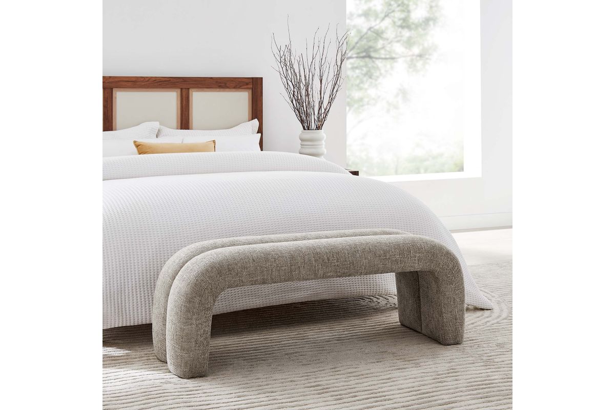 Discover the Dax Accent Bench, where chic design meets everyday functionality. Its chenille upholstery, complemented by rounded corners and a central seam, offers a modern twist on classic channel tufting. This versatile low bench combines dense foam padding and a solid wood frame for lasting comfort and durability. Its multifunctional design makes it ideal for use as a sitting bench, ottoman bench, or modern bench in a breakfast nook. Whether placed at the end of your bed, or as a window bench, the Dax decorative bench is sure to add a touch of elegance to any space. Equipped with non-marking foot pads to protect your floors, this versatile indoor bench comes fully assembled, making it a practical addition to any room. Weight Capacity: 331 lbs.