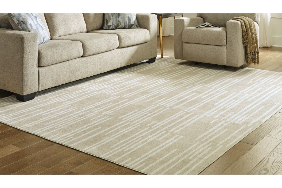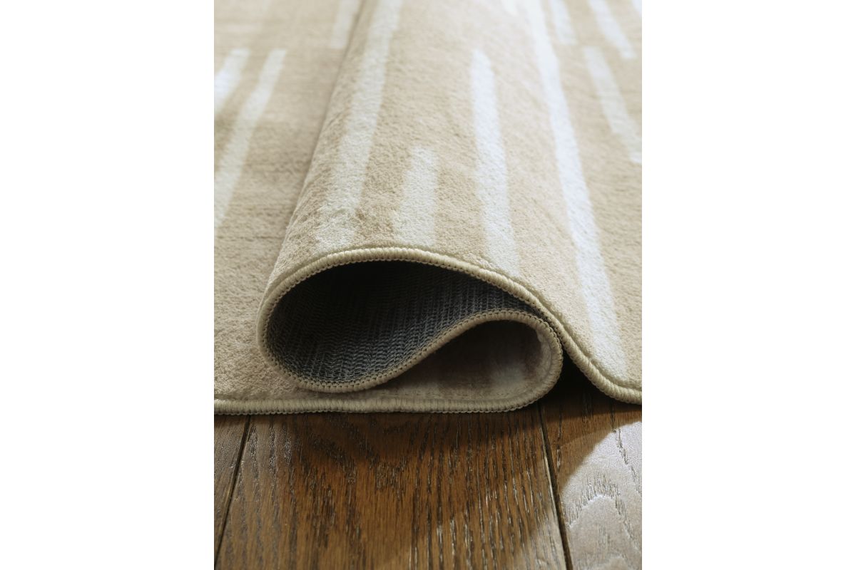 Dress up any floor with the natural hue and abstract look of this rug. It welcomes visitors with warmth and comfort underfoot. The neutral palette brings a marvelously modern vibe to your decor. This area rug is machine washable for fuss-free cleaning, making it an ideal addition to busy households with pets and kids.