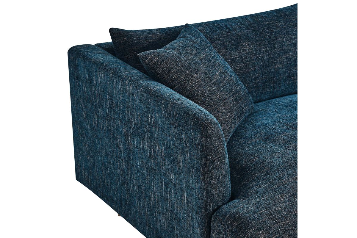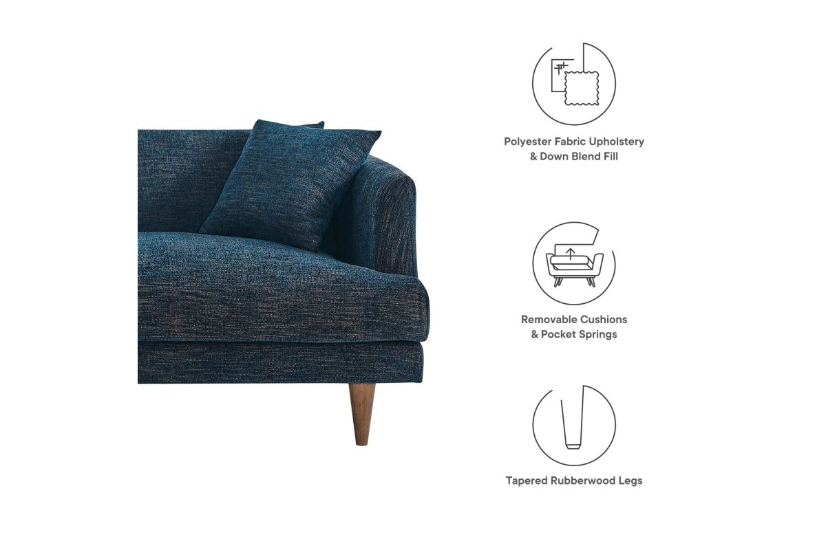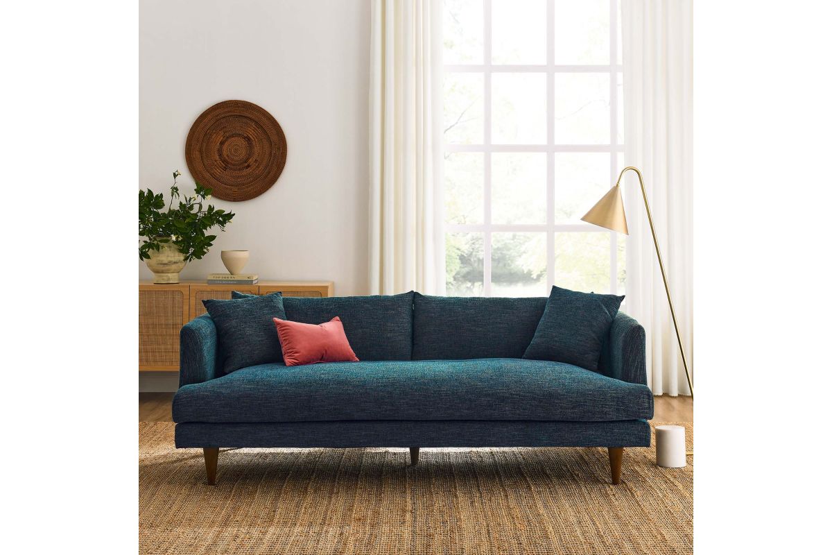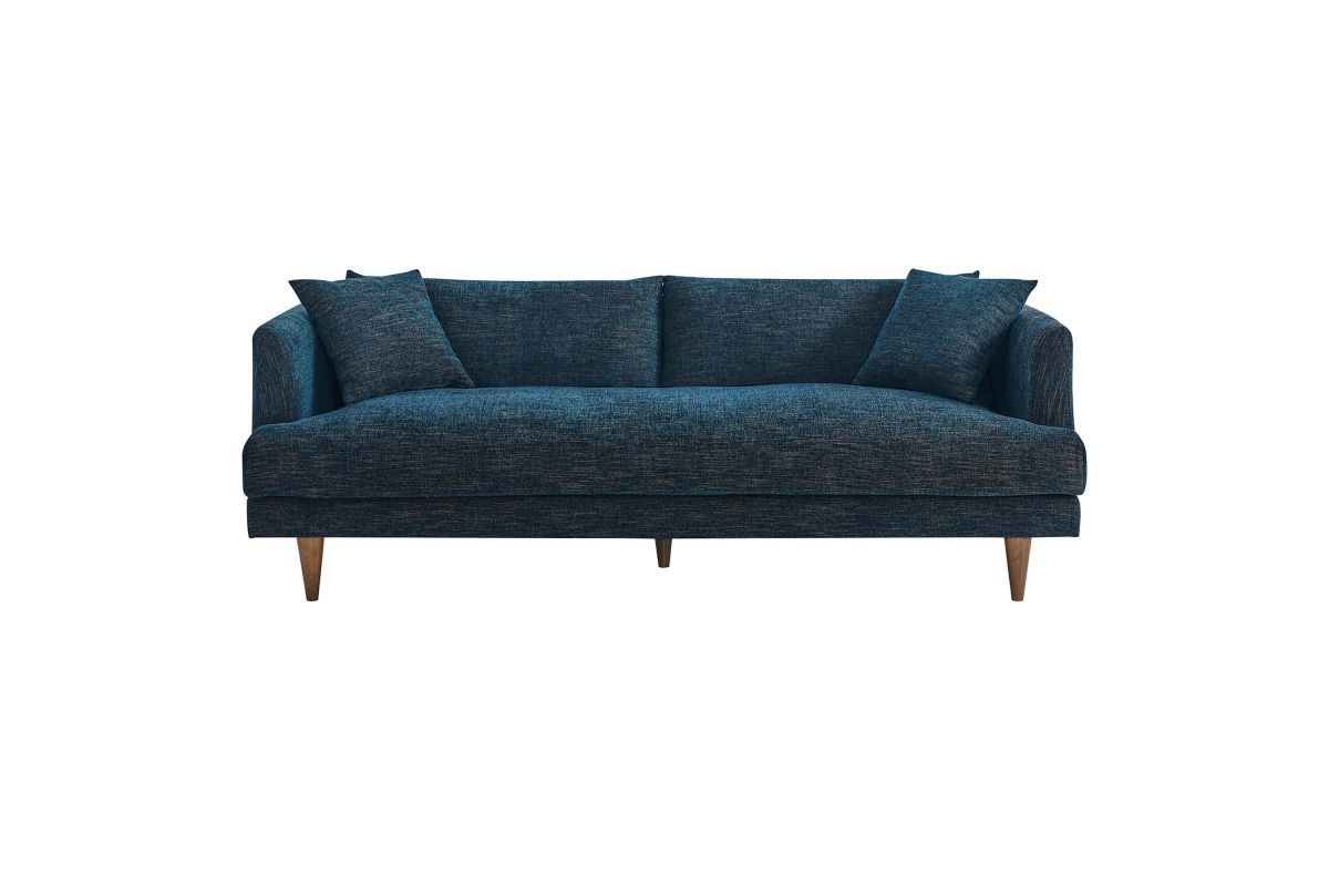 Dive deep into comfort and conversations with the Zoya Upholstered Down-Filled Sofa. The perfect addition to modern living rooms, family rooms, or game rooms, Zoya's design invites you into an immersive lounging experience, with a low, comfortable profile and spacious deep seating. Upholstered in polyester fabric with a down blend and dense foam filling, this living room sofa provides a soft, cloud-like sensation that retains its shape. Accompanied by back cushions and two square throw pillows, this sofa delivers a lounging experience optimized for comfort. The convenience of removable and washable cushions makes maintenance a breeze. Underneath a lavish exterior, Zoya integrates pocket springs, which offer added support, and comes perched on sleek tapered rubberwood legs and set on a solid wood frame. Whether you're hosting a movie night or reading your favorite book, the Zoya Fabric Sofa is your ticket to a luxurious lounge. Comes equipped with non-marking foot caps. Assembly required. Weight capacity: 600 lbs.