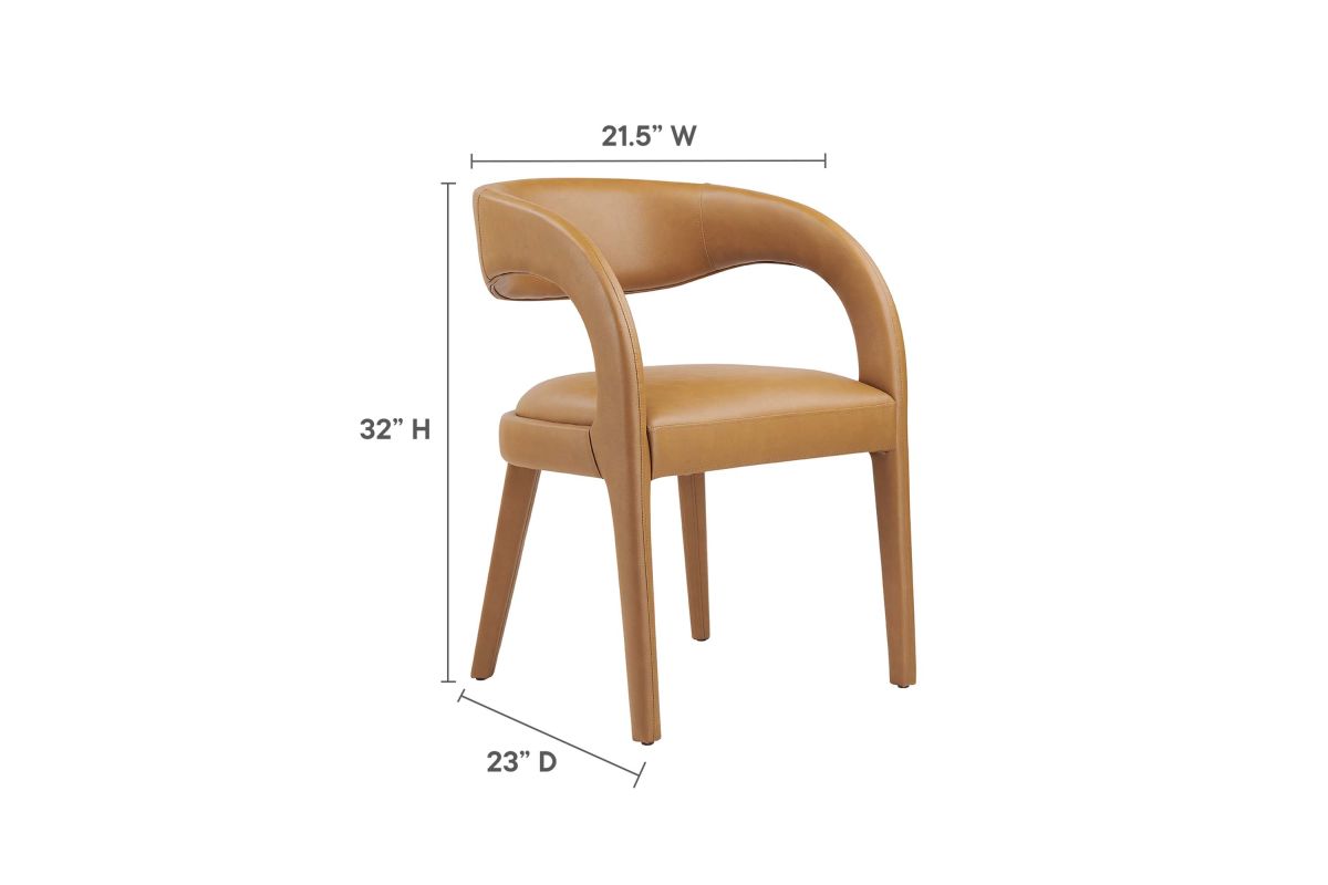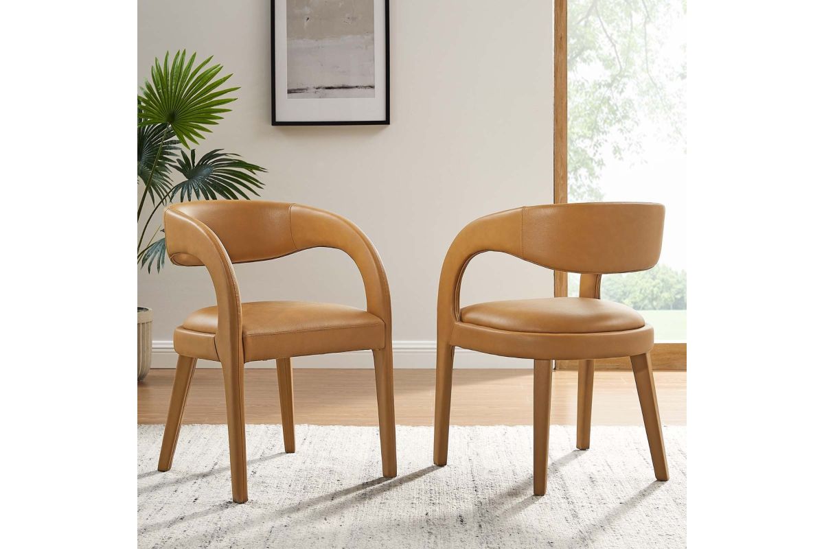 Experience the perfect blend of modern sophistication and luxurious comfort with the Pinnacle Vegan Leather Upholstered Dining Chair Set of Two. The distinct silhouette showcases a curved backrest and an open design that effortlessly enhances your dining or living space with luxe style. This dining chair set indulges your senses with its dense foam padding, upholstered in a smooth, quality vegan leather. Non-marking plastic foot pins ensure your flooring remains free from scuffs and scratches. With minimal assembly needed, this set not only offers a stylish statement but also a hassle-free setup. Weight Capacity: 330 lbs.