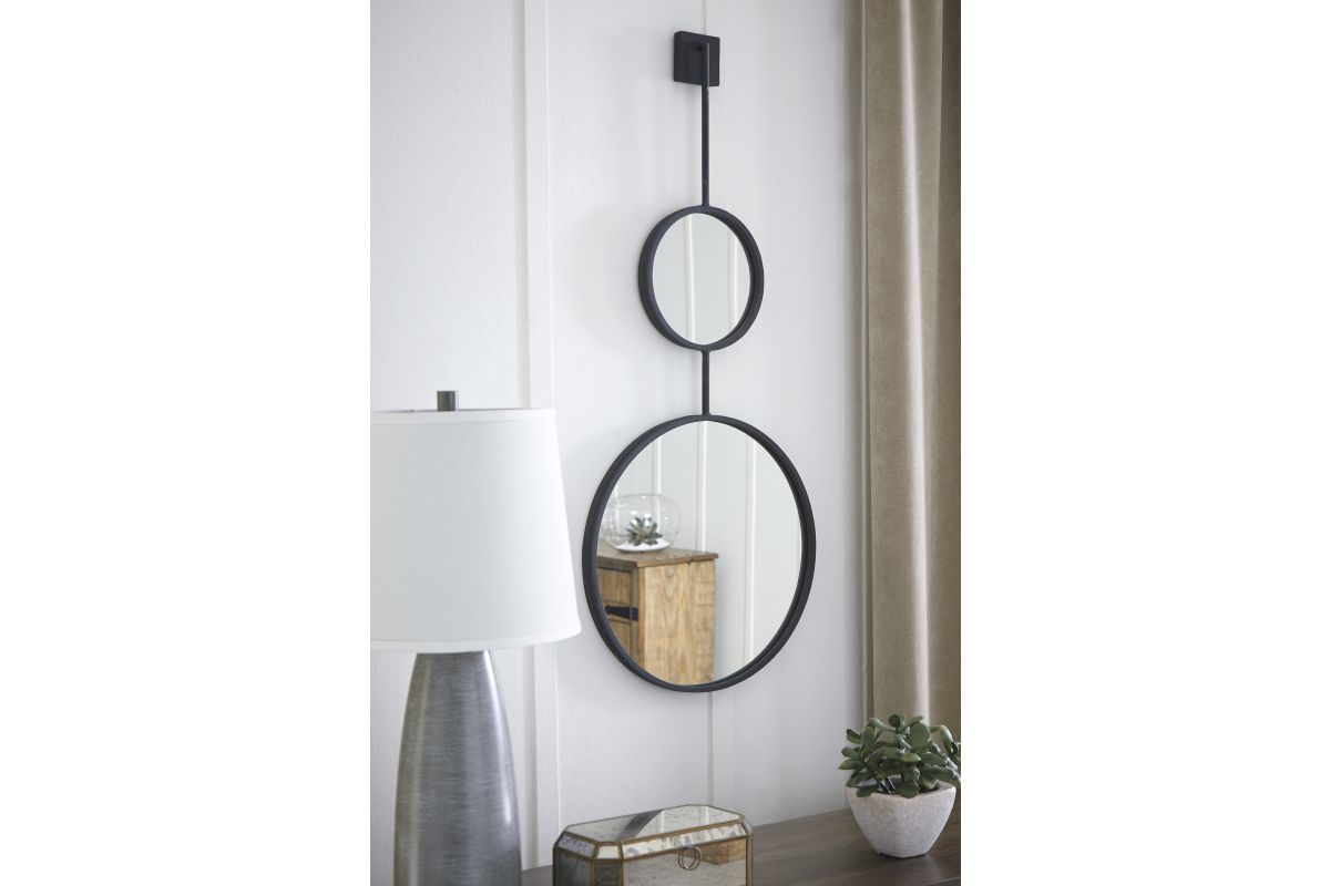 Contemporary style is stacking up beautifully in this metal framed accent mirror with stacked circle design. Whether gracing an entryway or brightening up a hallway or vanity area, what a simply striking way to round out a room.