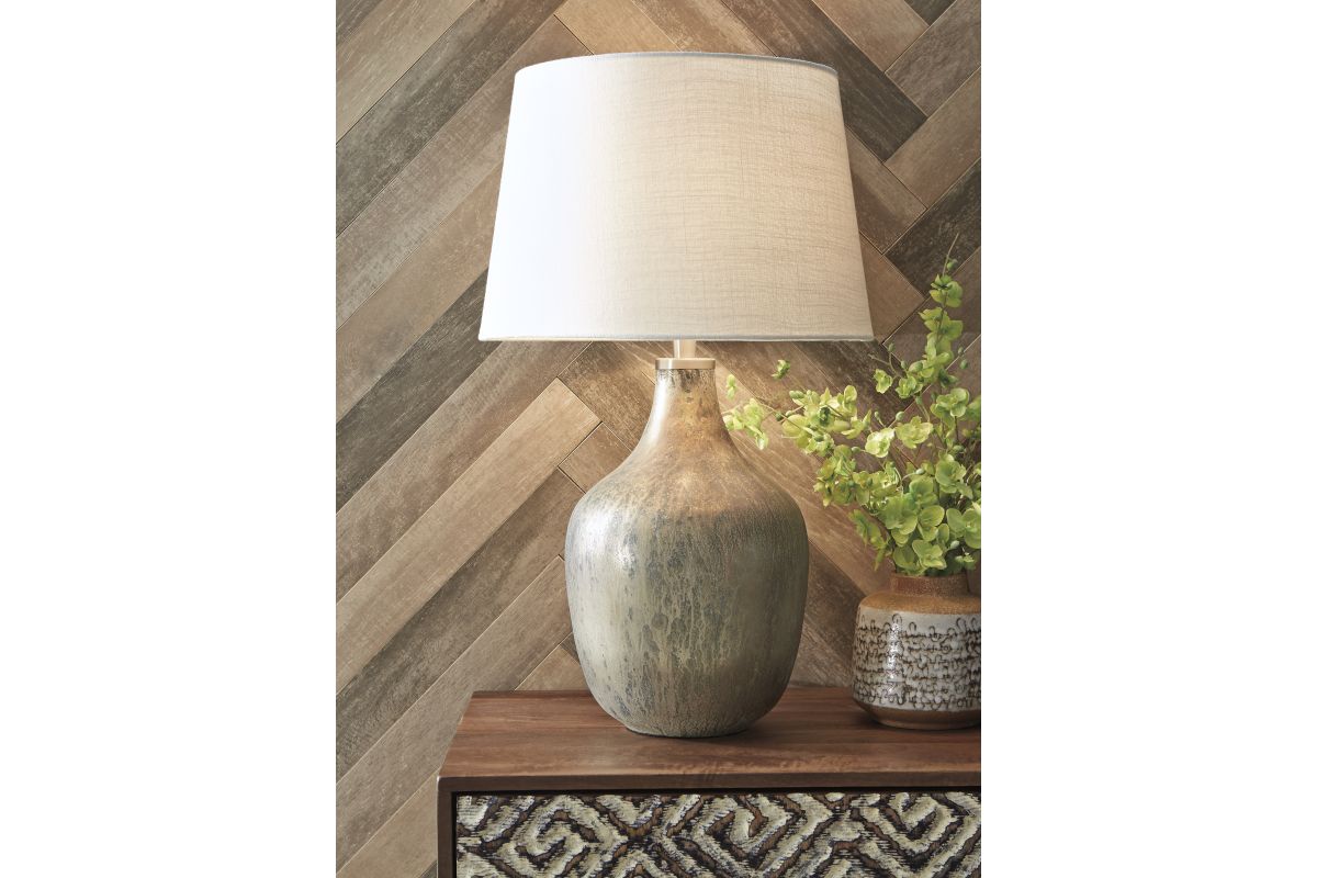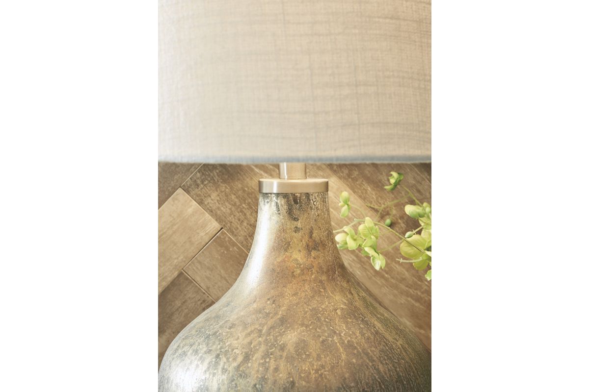 Evoke a vintage vibe in a thoroughly modern way with this glass table lamp. The gray-blue and light goldtone of the mercury-glass finish reflects a primitive aesthetic juxtaposed with the contemporary jar shape of this lamp. Add texture, interest and a certain je ne sais quois to your space for a look that's all your own.