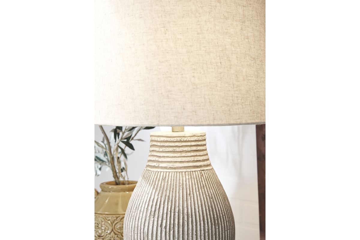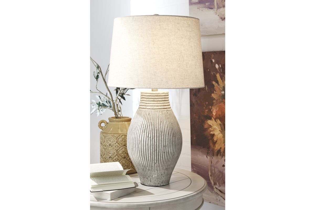 With its textural elements and neutral hues, this table lamp is a natural fit for so many spaces. Paper composite base with organic texture feels wonderfully at home.