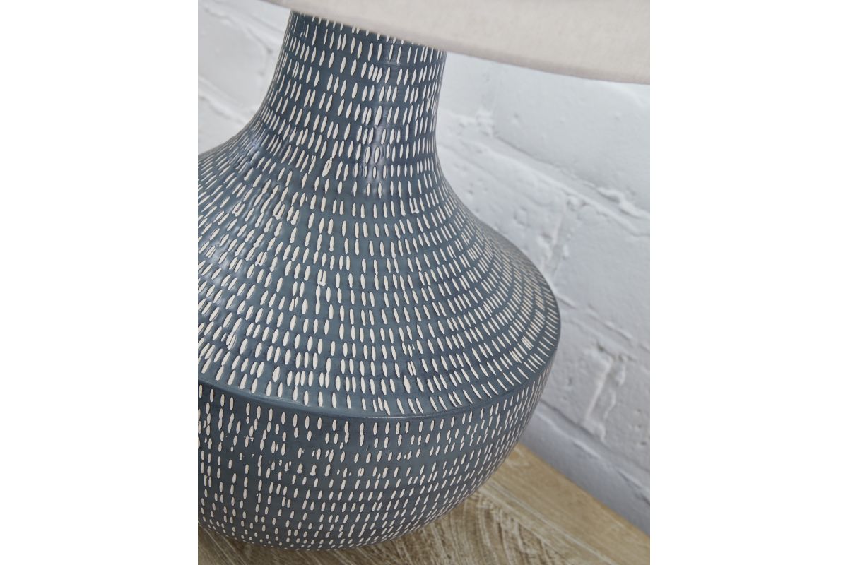 Enhance your decor with a touch of captivating texture. This table lamp features a beautifully crafted body made of hammered metal with an antiqued finish. Topped with a crisp off-white fabric shade, it illuminates a casual vibe with soft, diffused light. Create an inviting atmosphere and make every moment shine.