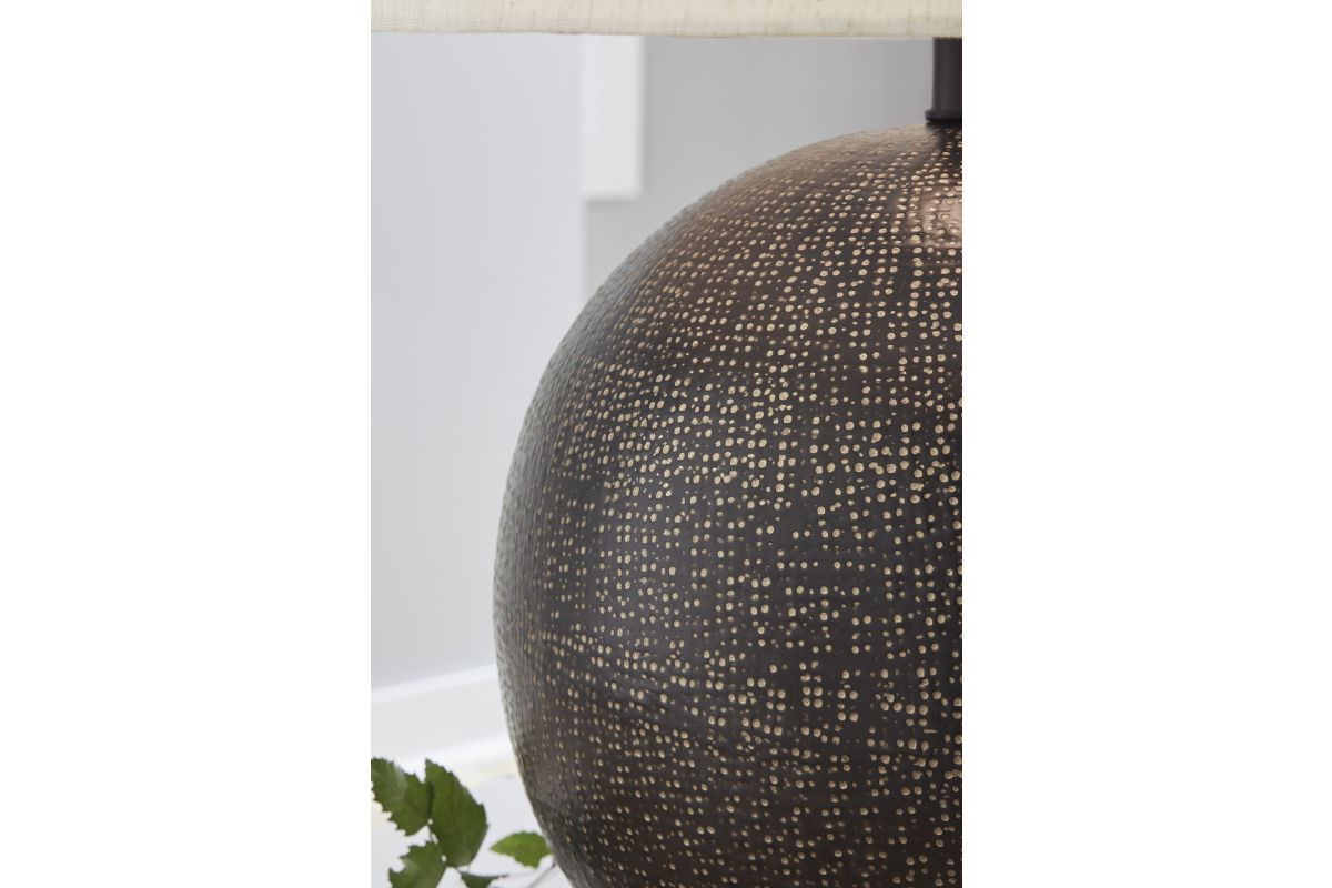 Turn on to a casually elegant sense of style with this table lamp. Its richly finished metal allures in a striking black with goldtone accents. Whether set on a side table or resting on your nightstand, it lightens the mood and brightens your home's overall ambiance and style.