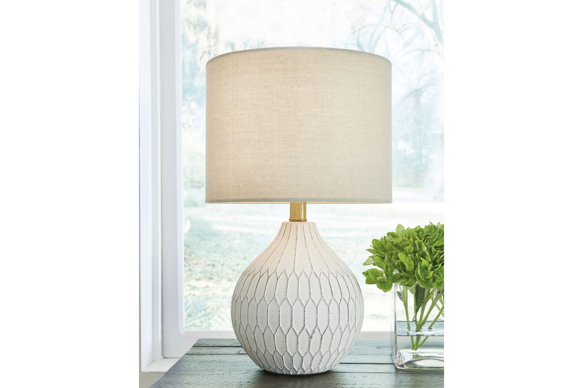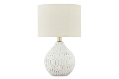Fresh and light, the dimensional design of this delightful ceramic table lamp borrows from a retro theme to update a transitional space. Made of ceramic with an antiqued white finish, this accent lamp infuses personality into any setting. Add it to a console or end table and bring out the bright in any decor.