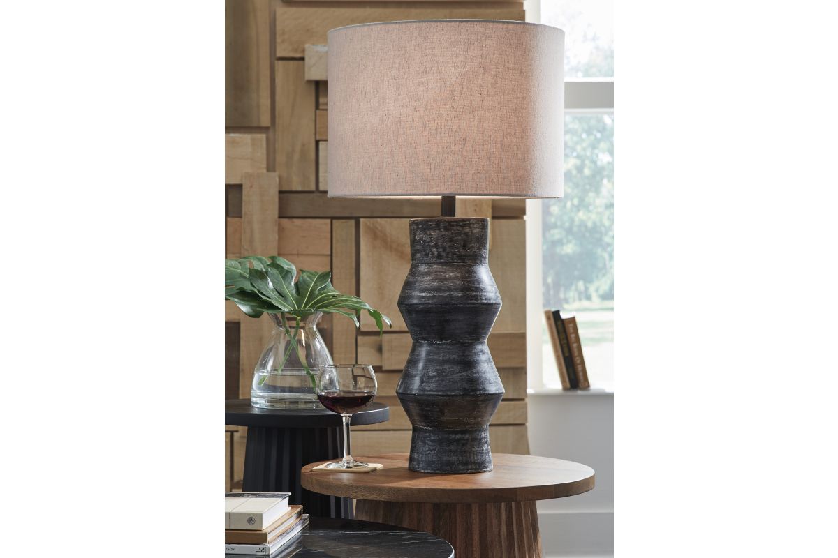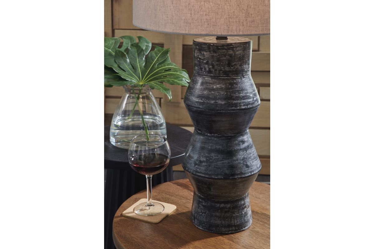 Add a touch of casually cool style to your home with this table lamp. The terra cotta base sports a black rubbed finish that effortlessly complements a wide range of decor and color palettes. This versatile and illuminating choice is sure to be the glowing centerpiece of your TV room, inner sanctum or home office.