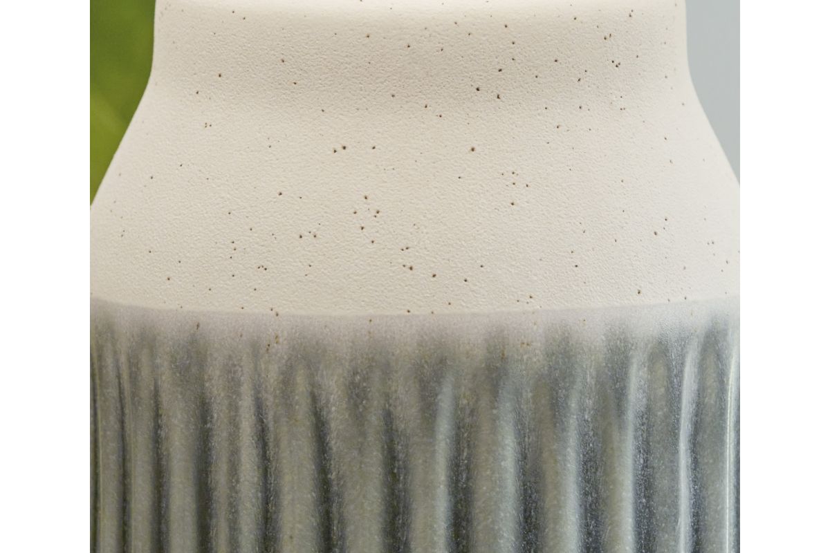 • Cream sanded finish with light blue transparent glaze